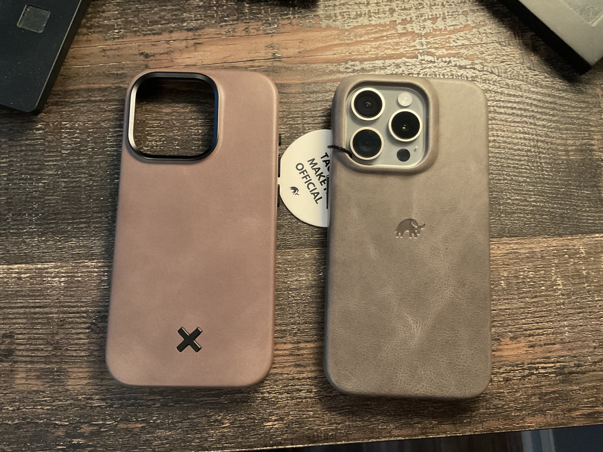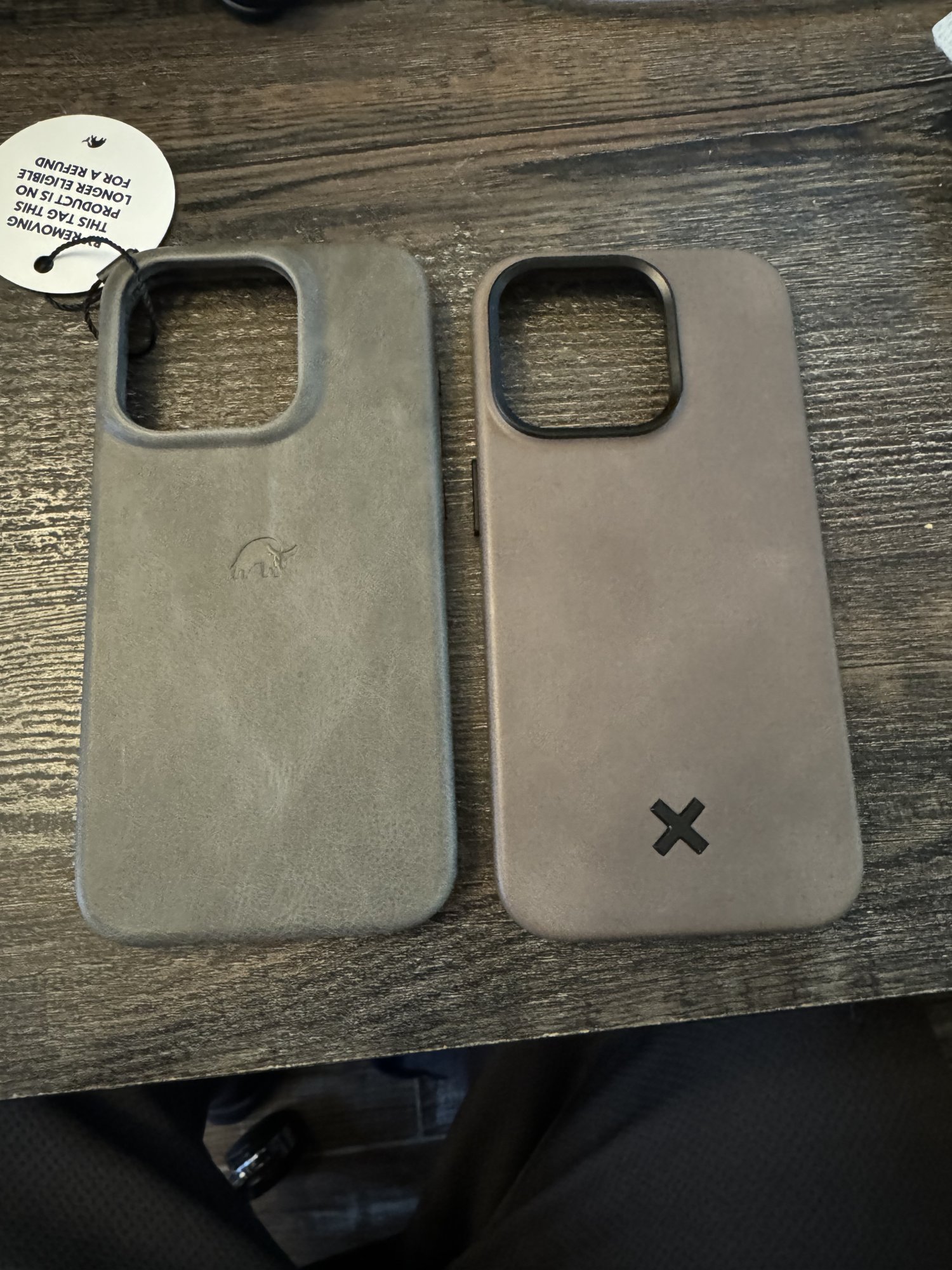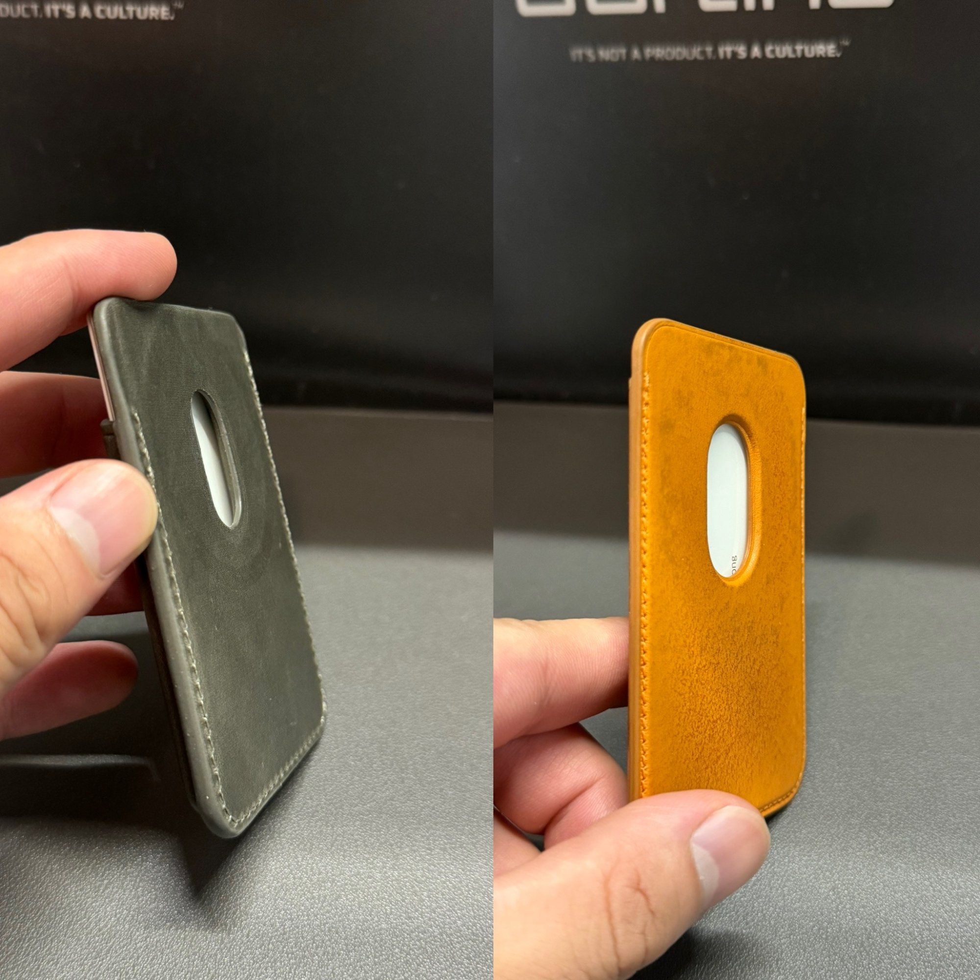 I personally think the Keyway looks the nicest of the three. I'm really tempted to get their Slate when / if I ever grow tired of the Whiskey.Here is the battle of the slate cases, Bullstrap vs Keyway. Did some pics in different lighting for comparison. The Bullstrap is more grey while the Keyway is a grey/brown. I prefer the look and color of the Bullstrap. Weight is really close, Bullstrap 32.5g and Keyway 33.3g. The leather on the Bullstrap is definitely thicker so the case is a little more bulky. The lip on the Bullstrap is lower which I really like. The buttons are a little easier to press on the Bullstrap. MagSafe is a tie. It’s hard to compare leather feel since I just got the Bullstrap yesterday. You can feel the grain structure more on the Bullstrap than any case I’ve used so I like that, leather is a little dry straight out of the box but at least it’s not slippery like most new leather cases. My biggest complaint about the Bullstrap is just the open bottom. I used it for about 20 mins yesterday and had an intention in my pinky where the phone was resting. I’m not popping any tags until I can figure out if there is a way to hold it without the pinky discomfort. As far as price, is the Bullstrap worth twice what I paid for the Keyway? I would say no. I just really like the color.