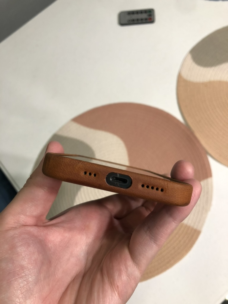 A very beautiful and high quality case, definitely very pleasant to touch and has open bottom. It's slimier compared to the cases above, but still thicker than Apple's one. It has not developed too much patina over time, because of protective coating, also have not become any grippier than on day 1. MagSafe strength is good.