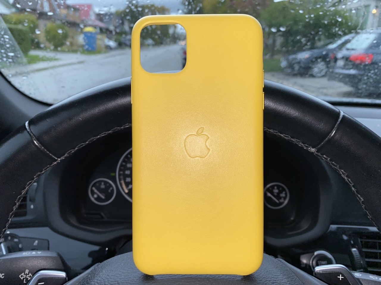 Beautiful, any pics with the phone in it? This yellow go better with the Midnight Green or Space Gray?