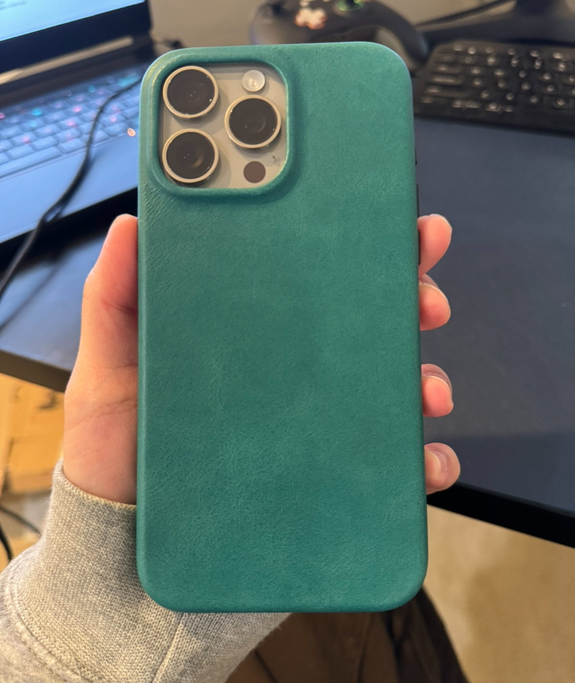Got my “navy” lucky coin case in today and happy to report the usb c and speaker holes line up on this one. I really like the turquoise color. I’m going to do several leather treatments and see if I can get the leather to feel as good as the bare case. Interested to see how this color will patina