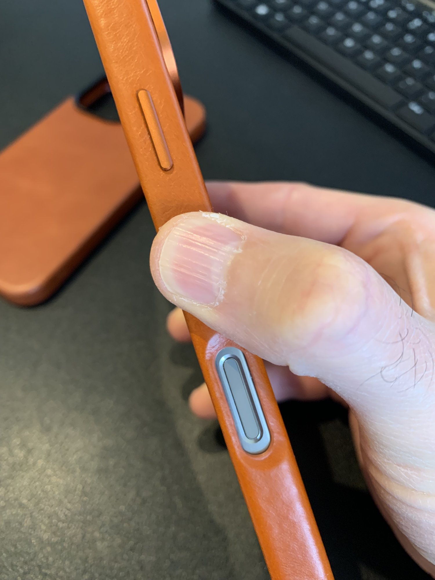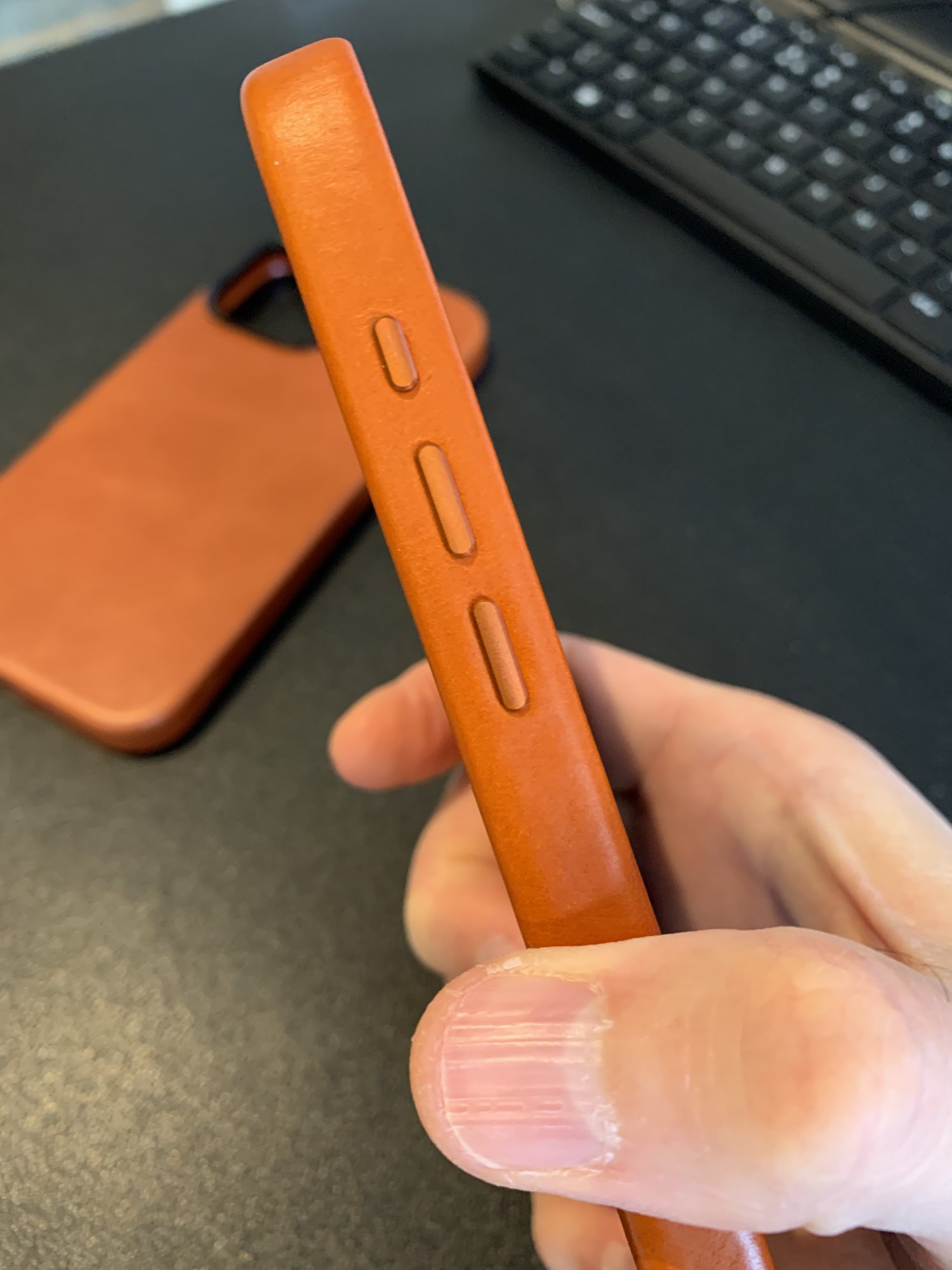 Same style as RL by the looks. Still prefer the Casebelle buttons, remind me of the old Apple leather cases back in the day.It’s just the lighting that made the photo look off. All the buttons on the sienna case are the standard black ones.