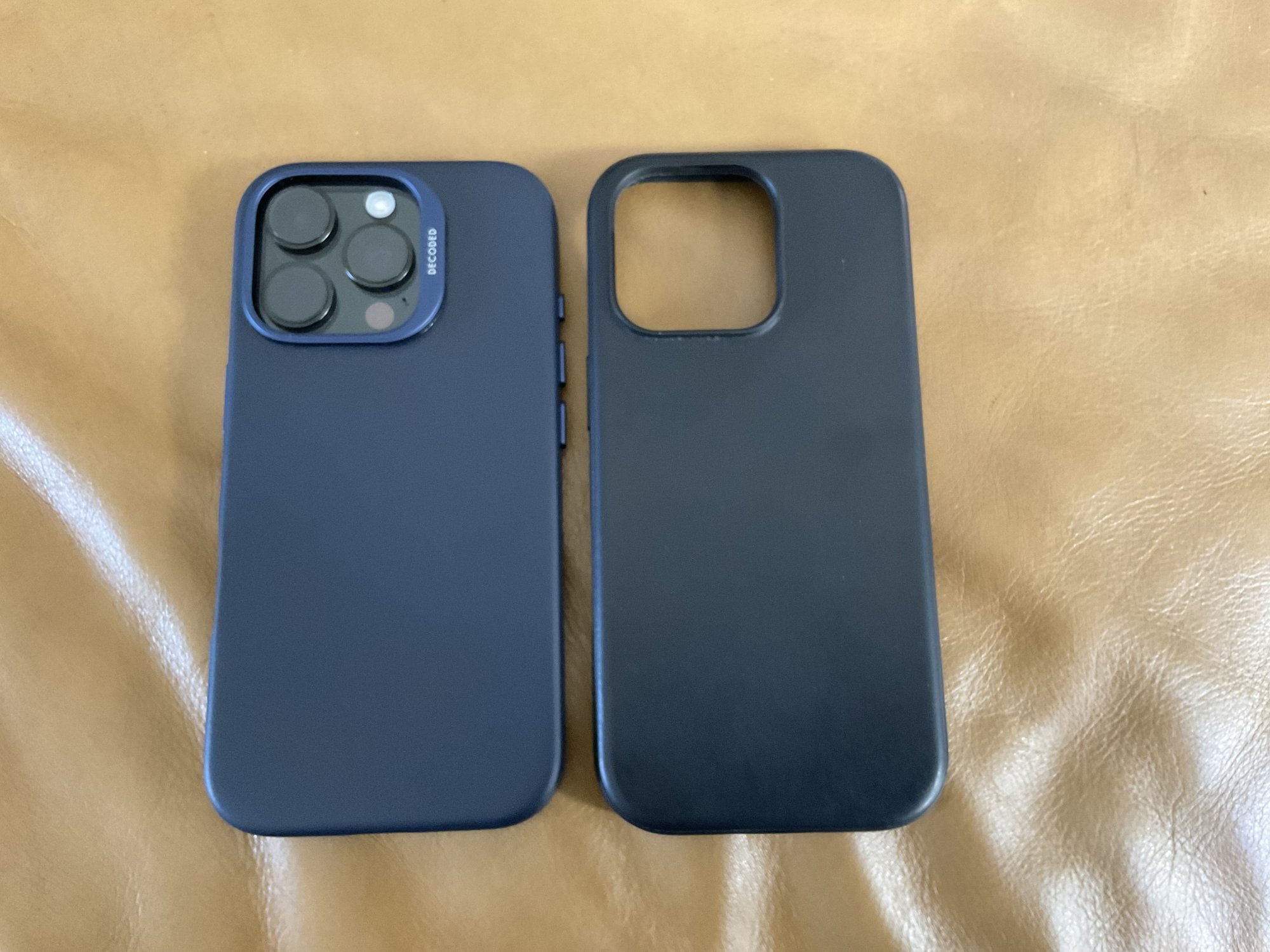 I like it! I've been a big fan of decoded lately once I heard about them and bought a think or two from them. I may need to pick up for my 15 Pro TB! Is that for 15 Pro or 16 Pro? Also, I don't mind the lettering.Brand new Decoded case in blue next to my Nomad Horween in black. Leather feels good, though it does appear to be coated (leather conditioner did not soak in).