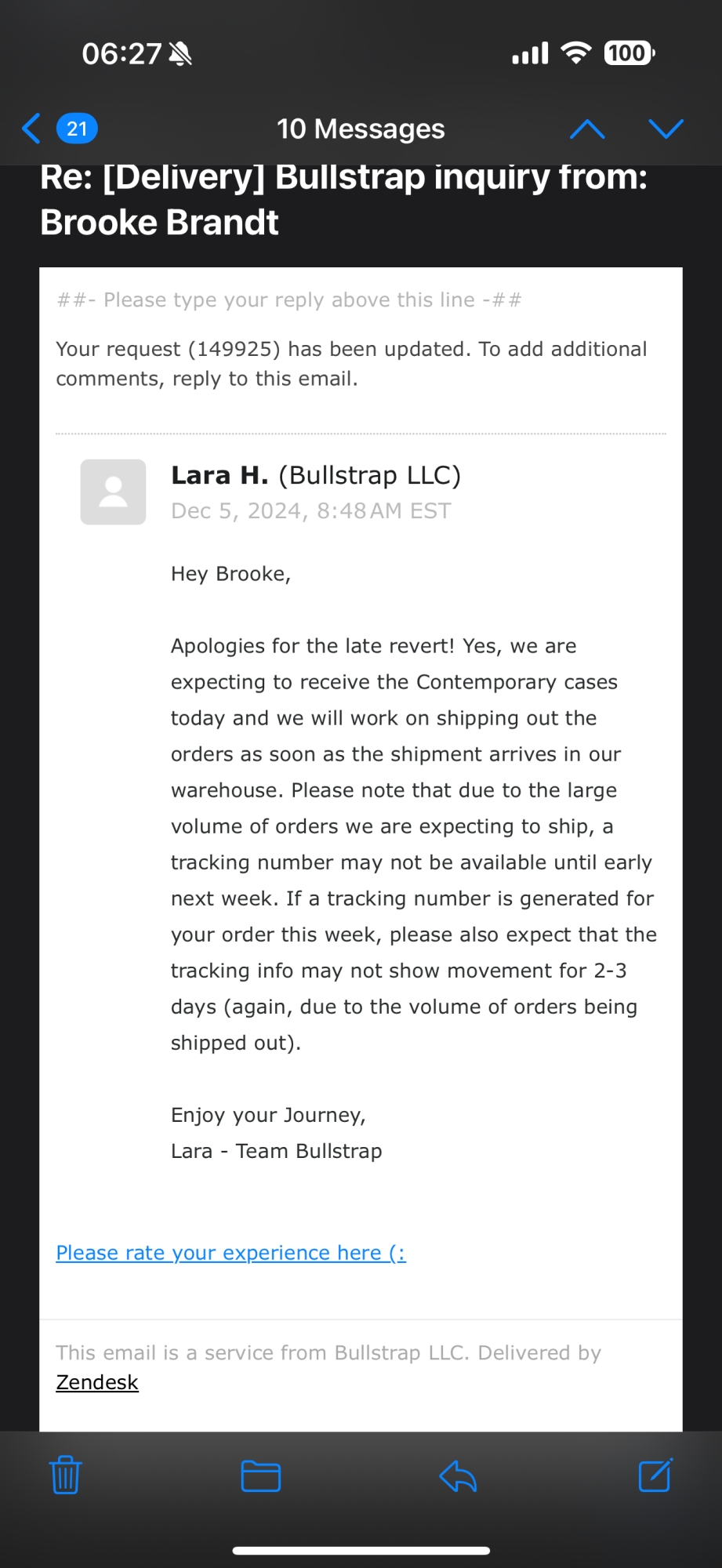 Happy a response came but this is ridiculous! Your case should have already shipped and now you have to wait because of “large volume of orders” come on bullstrap.Finally got an email!