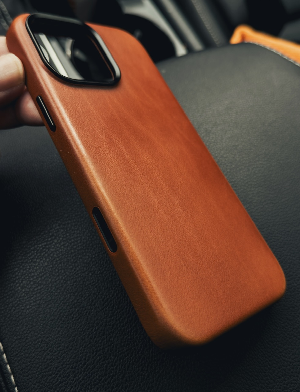 You absolutely can't go wrong with gold (dessert) and black! That would look great! I have said for years Apple should offer a black phone with gold rails and titanium camera rings. That would look incredible. In fact I have the dessert 16 pro stock wallpaper on my black titanium 16 pro.Just a quick photo at my office of my Alex Goldfinch, I think I have been 2? 3 ? months with this case. Patina is looking awesome. I have sweaty hands, so cases with me patinas a lot faster. Leather is awesome, buttons are even softer and clickier. Everything on this case is growing on me, logo looks to me nicer each day, really classy. Not sure if I’m buying a black one now they are discounted or wait for them to bring cc button at full price. BTW someone have a photo of a titanium dessert with a black case? Will they blend good?