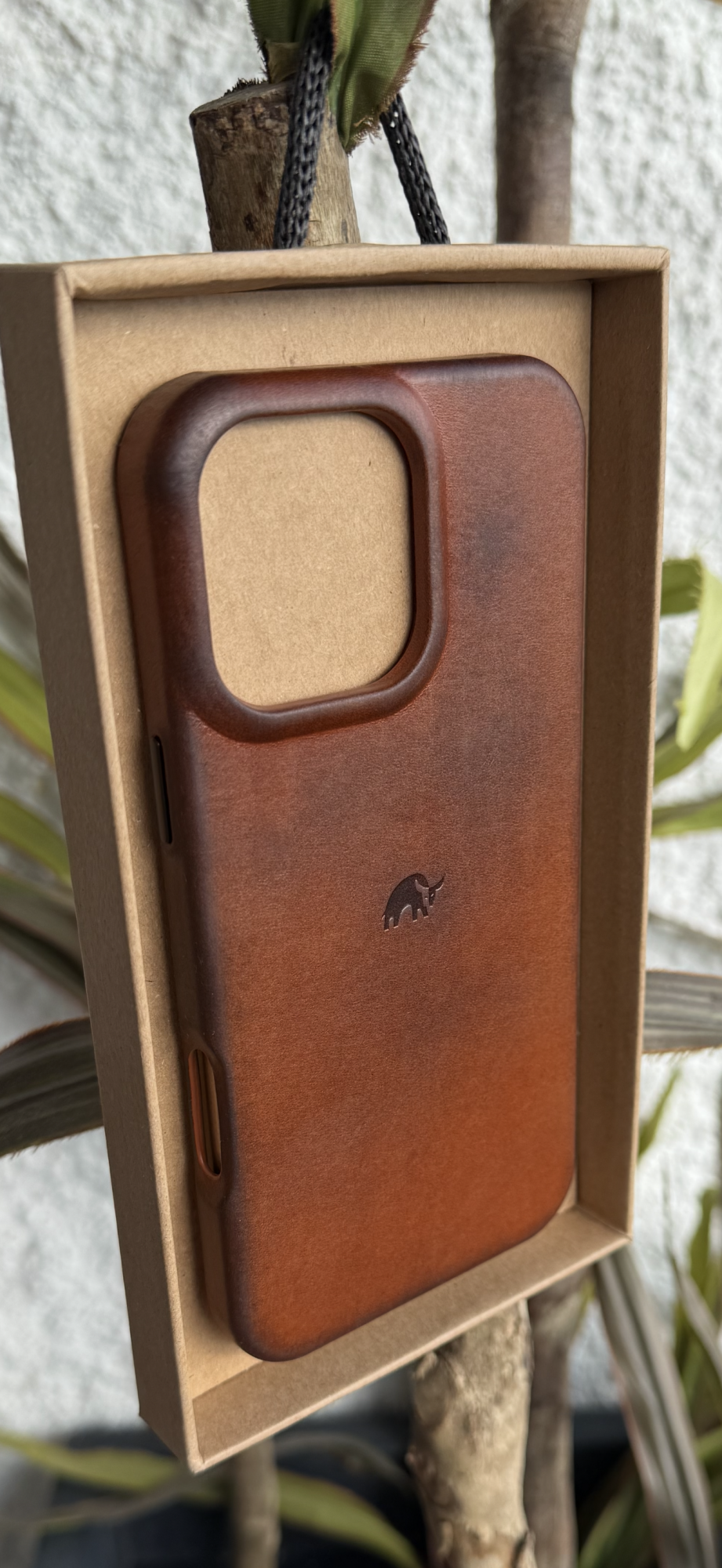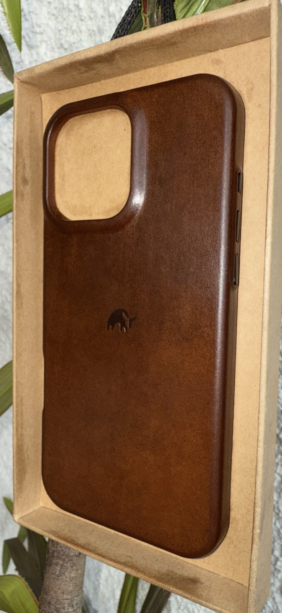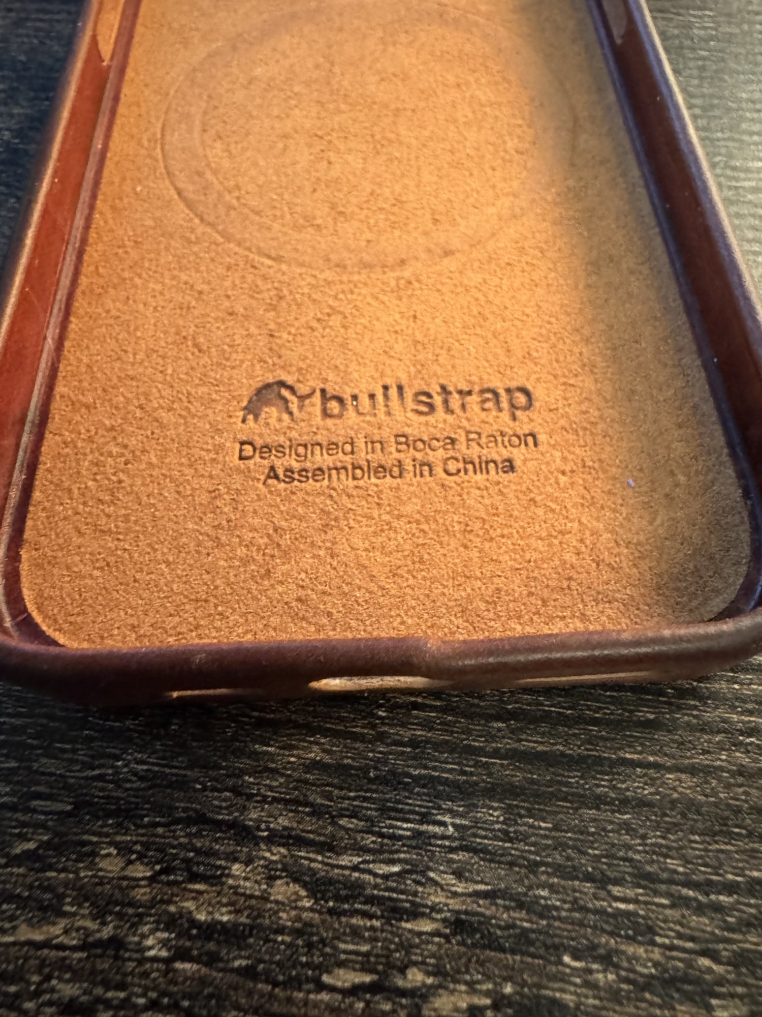 Here's an approximately one year old Ryan London case on an iPhone 15 Pro beside 2 other items purchase around the same time. I also own the saddle brown version and I will photograph it when my worldly belongings arrive at my new home in Japan. I really hate the way the saddle brown looked after 4 months of use being switched back and forth with this black case. I think it patina'd terribly compared to other saddle brown leather items I own.