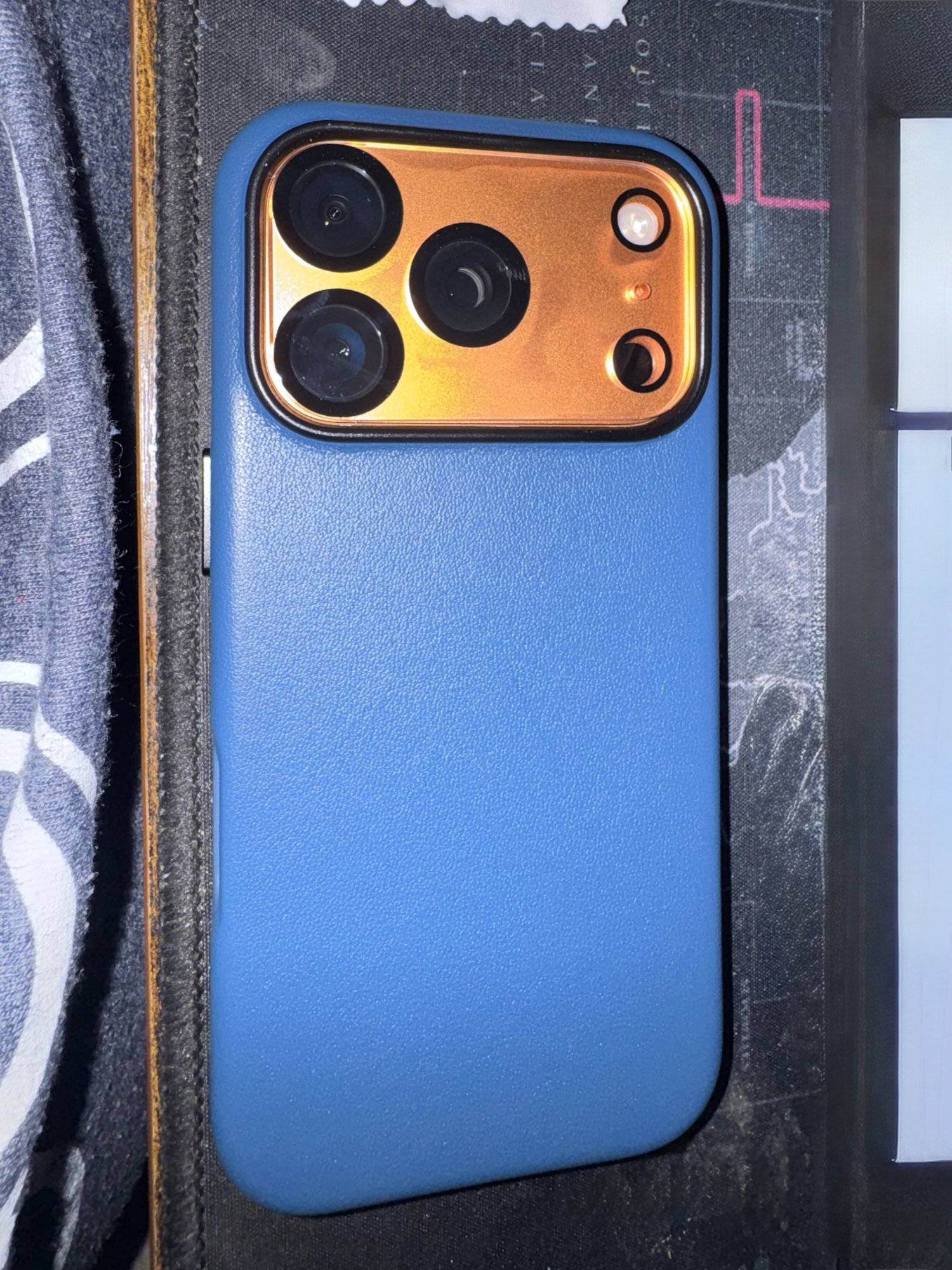 LONLI Classic | Gold-Rated Leather - European Genuine Vele Leather Case for iPhone 17 Pro - [Built-in Camera Control and Compatible with Magsafe] - Azzurro Blue