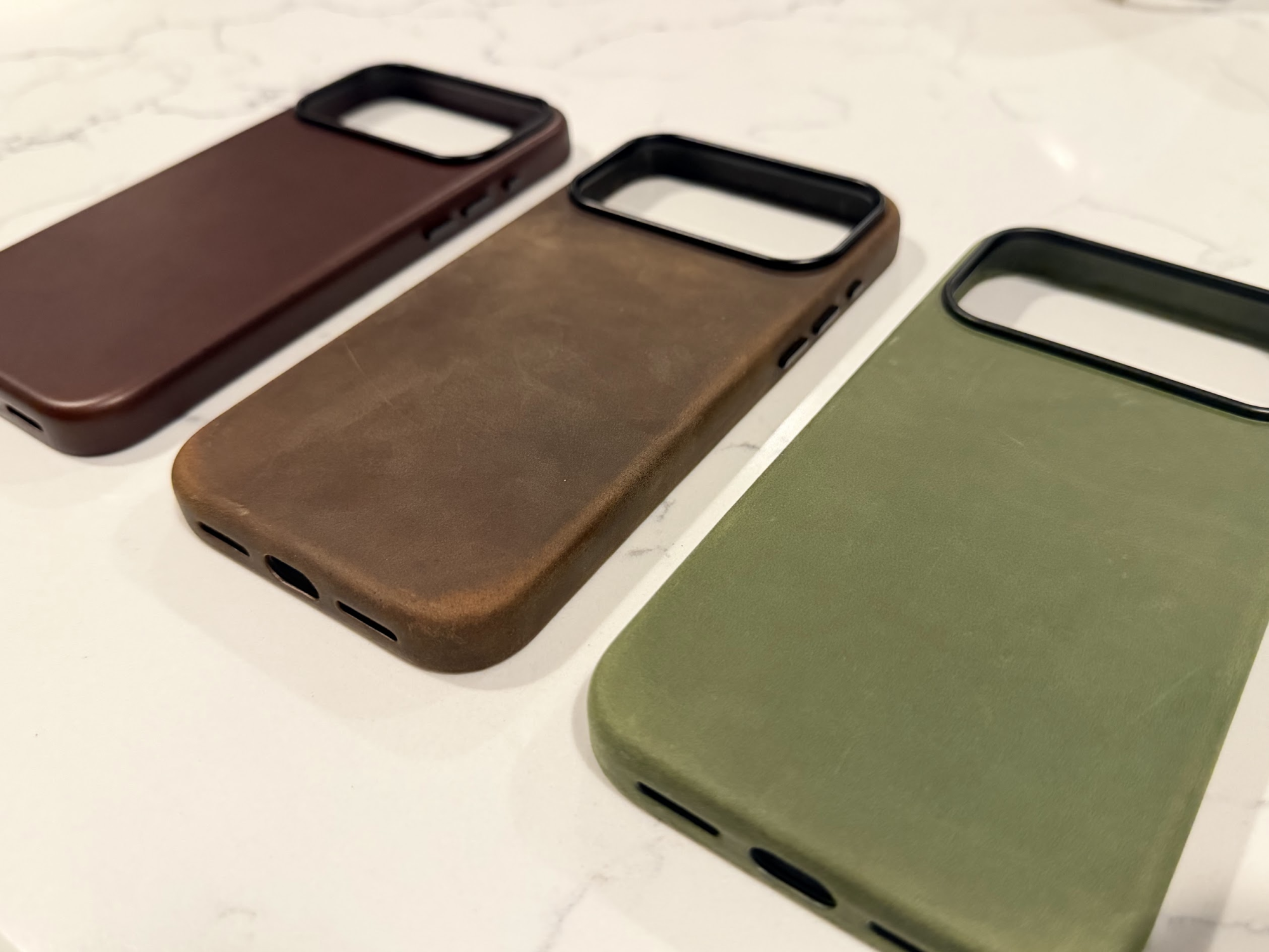 The vegetable tanned case has a typical smooth finish, whereas the crazy horse cases have a soft, felt like surface. Really great feel and grip. Scratches basically just touching it but wipes away. Curious how well it will hold up long term though.