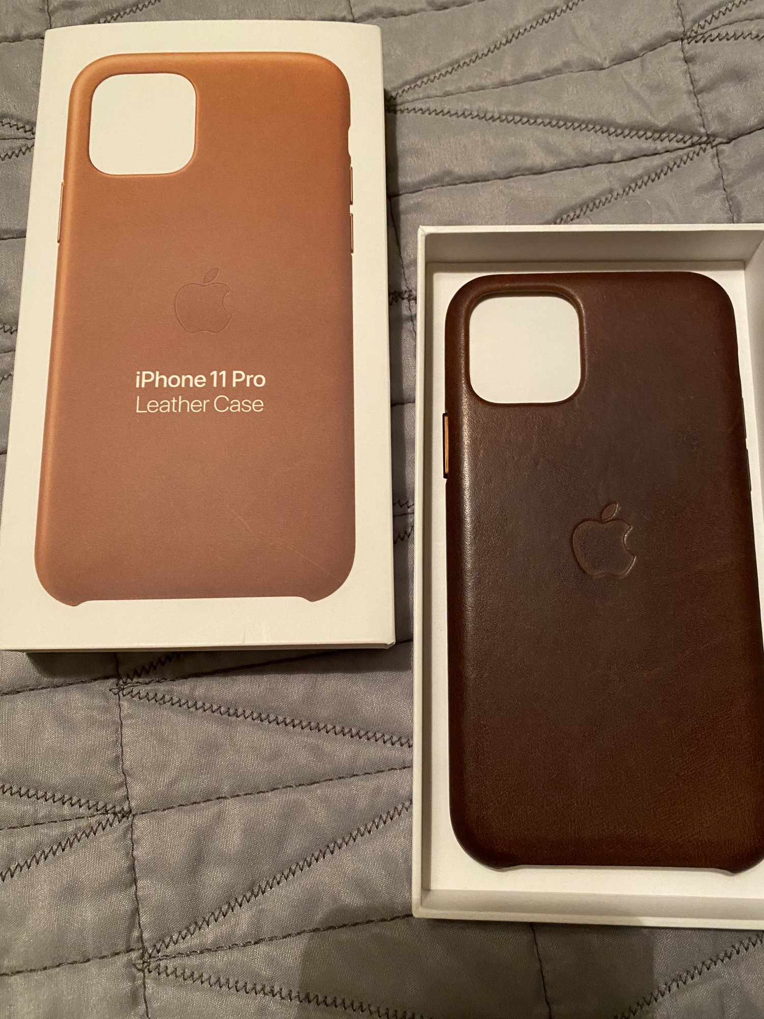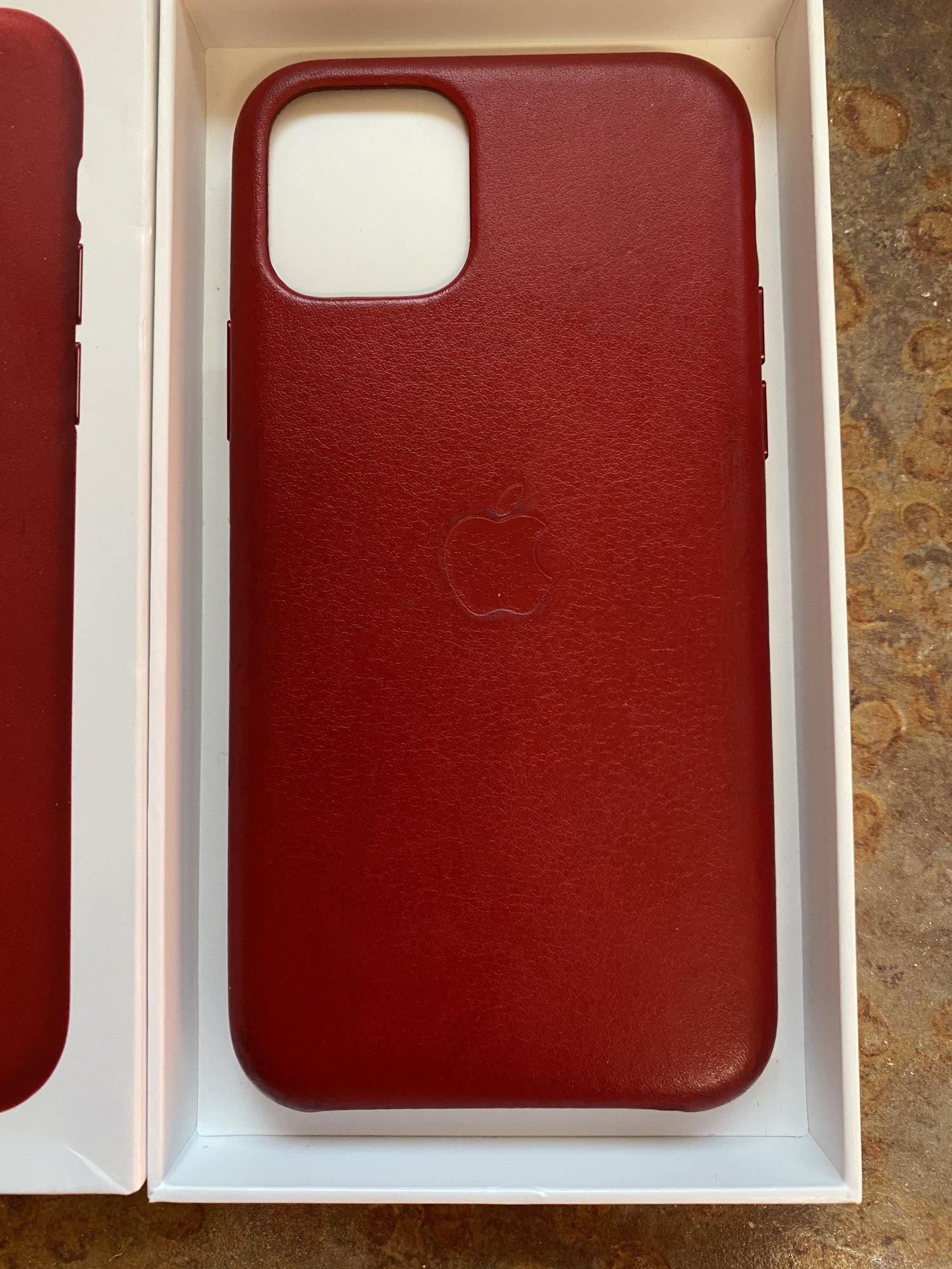 Here’s my red leather case. I’ve been using it for about a month now. It’s gotten darker already. The last pic is from when I first purchased it. I also had the yellow case, but ended up returning it after only using it for a couple of hours. It had already taken on some of the dye from my jeans leaving a tiny blue speckle on the top of the case that I couldn’t “unsee” lol. I just had a feeling I was going to get it super dirty really fast and didn’t want a dingy looking case. Although, my saddle brown and red leather do look dingy. Oh well. My black leather case still looks pristine.This is my Red Apple leather case. Had it since I bought my iPhone 11 Pro Max.