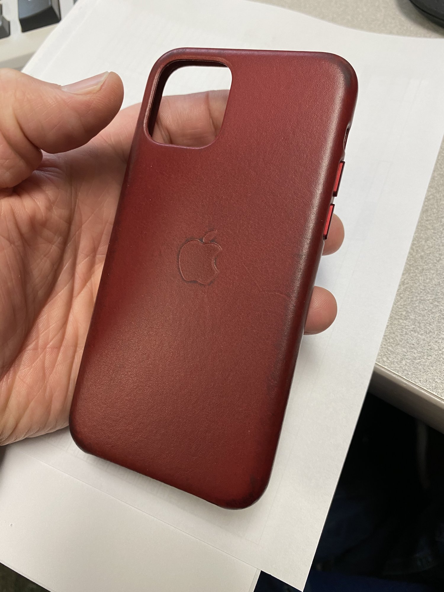 It makes me wonder if it’s leather at all. My red leather case is just turning black at this point. It looks like a cheap faux leather once the dye has rubbed off.I’m disappointed with my new case. Had it since February and its showing no signs of ageing like the one i had on my iPhone X