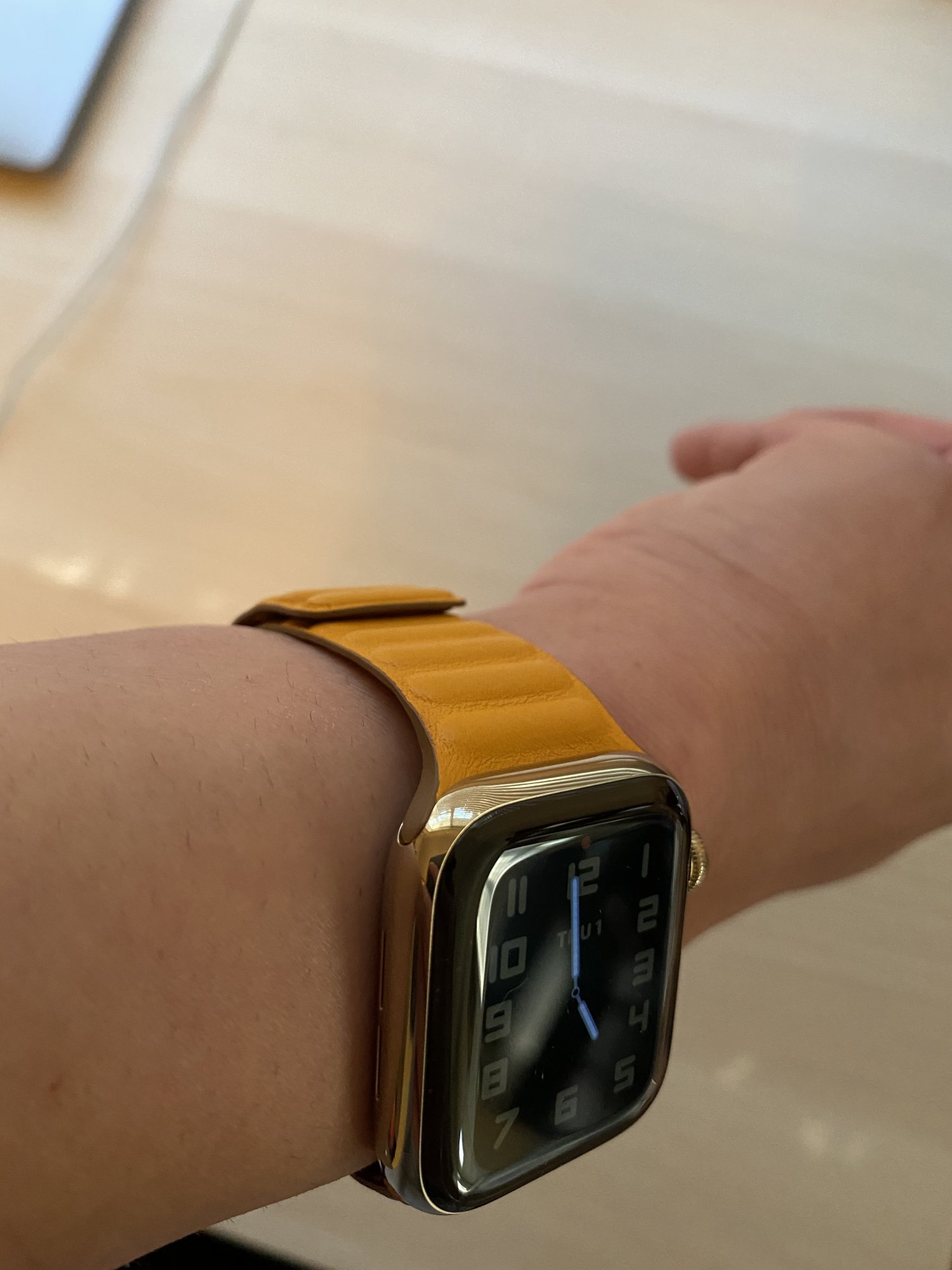 Lucky!!! how does it feel???Just got in my California poppy leather link with my series 6 stainless goldView attachment 962089