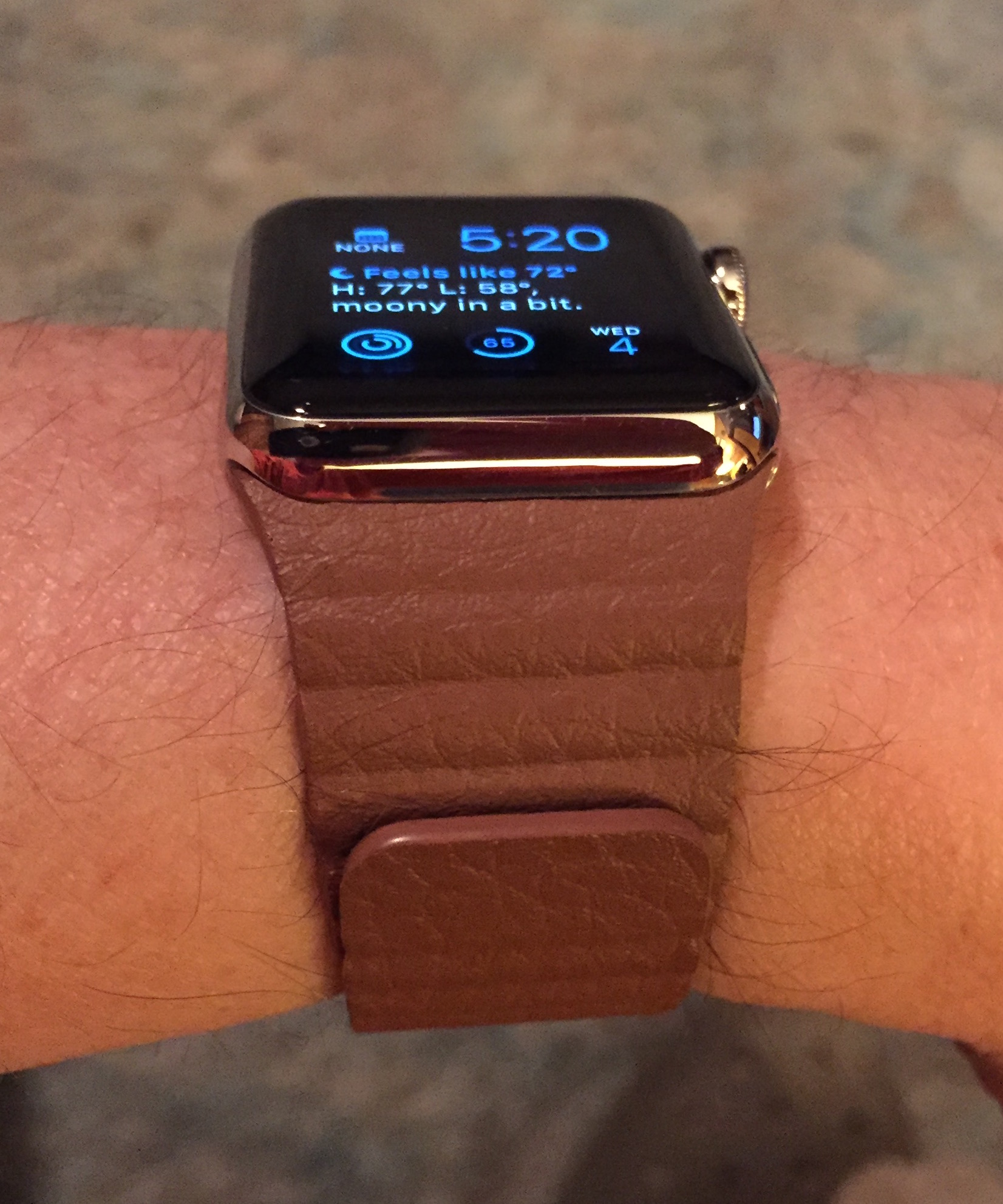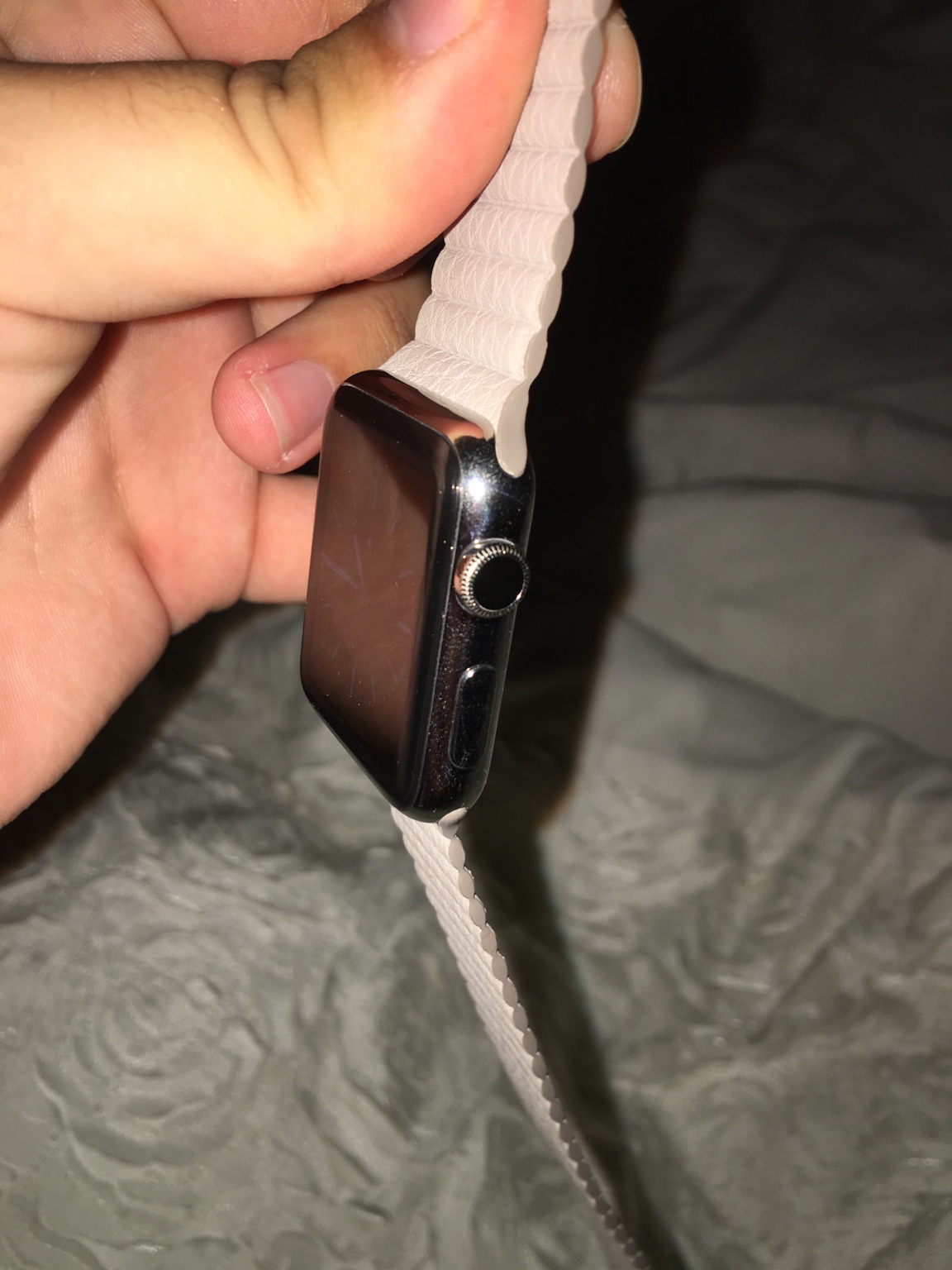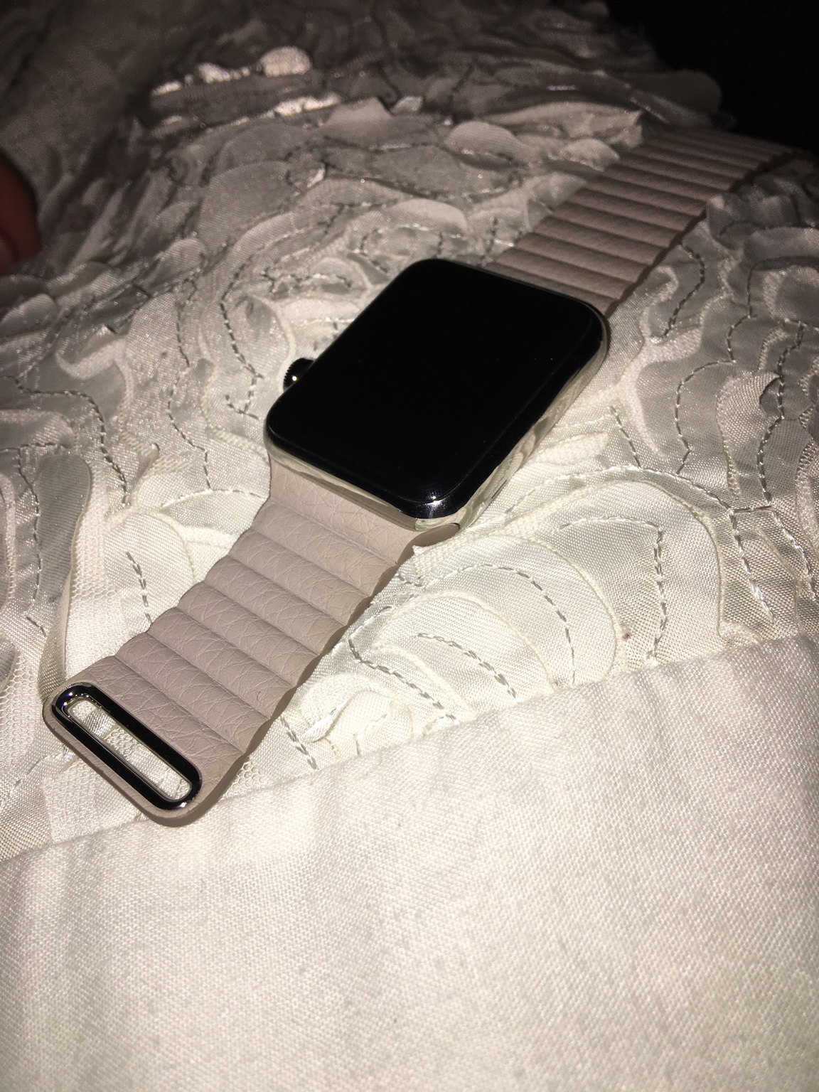 Unlike others it has size and I ordered the smaller size for the 38mm. It's smaller than the medium size of the 42mm Apple leather loop which the others I've seen are not. It feels OK, definitely less plastic like than one I ordered from Amazon (and returned). Too early to tell about durability but seems OK. The fit is good but not perfect, otherwise the quality seems good so far. Here are some pictures including how it looks on a 150mm wrist. The Apple leather loop on a 42mm and one I tried from Amazon on the 38mm would loop back and almost touch the watch.
