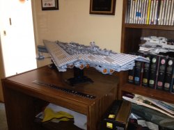 Super Star Destroyer that I did last year. 51" bow to stern. Sorry the pictures are fuzzy. Also in the background of the 1st picture is an Imperial Shuttle Tydirium.