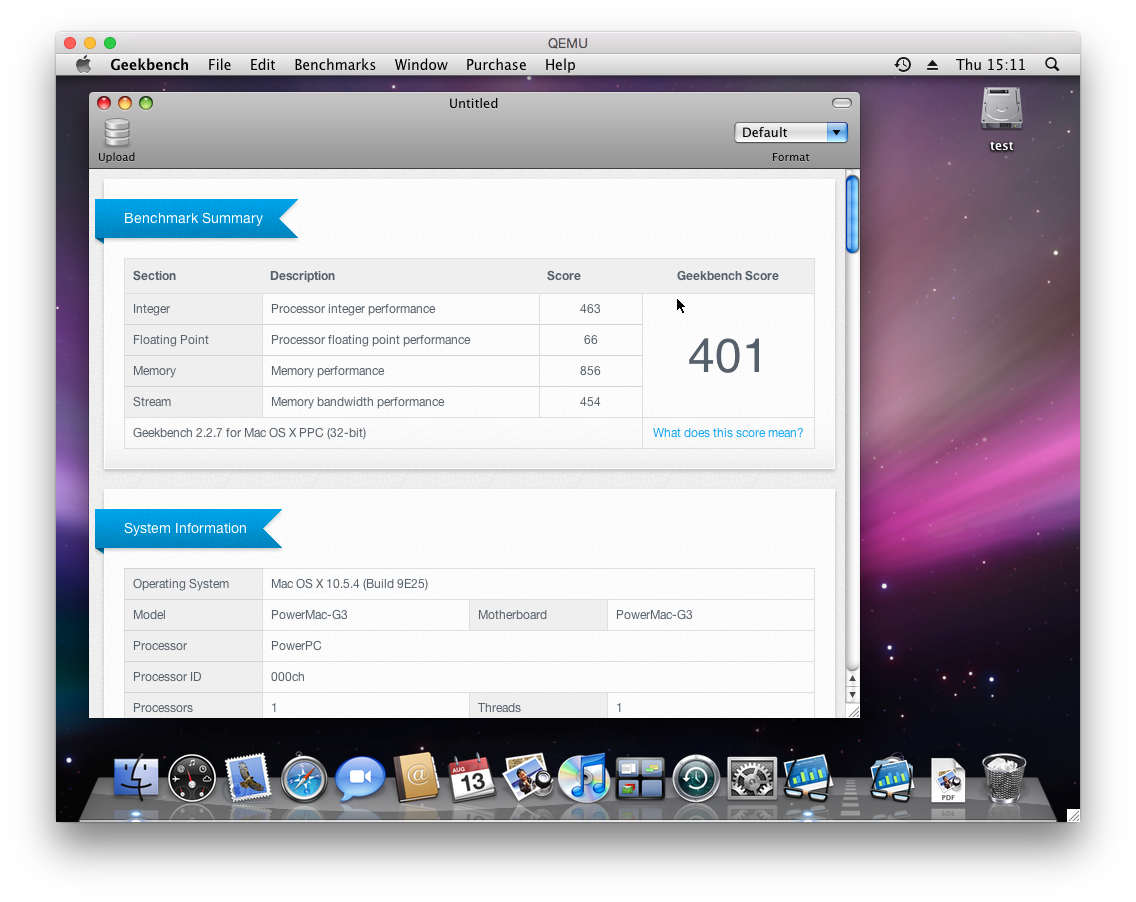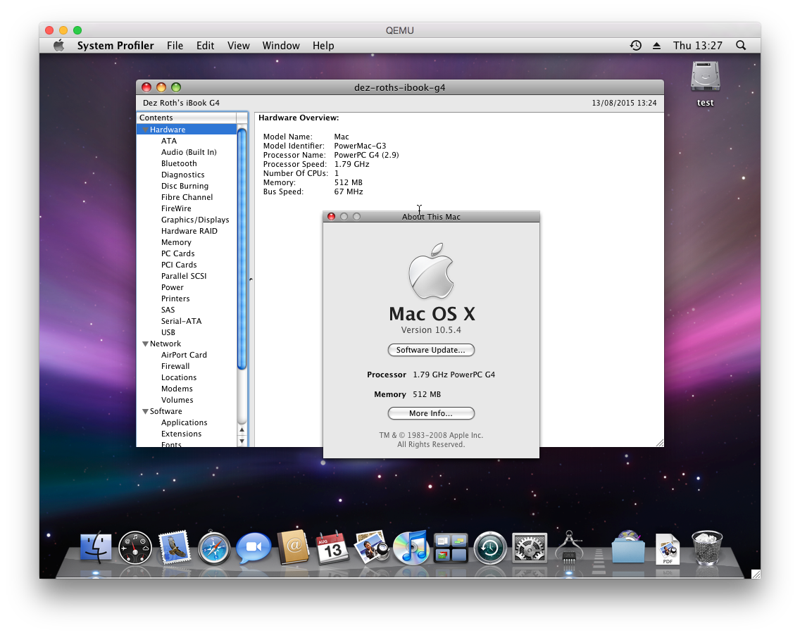 Hey this is something i have been trying to do for a while now... it was a given rule that no PowerPC emulated (QEMU PearPC etc) could boot leopard now the Problem is that PearPC and qemu emulated Grackle machines witch leopard will panic on so I followed the guide for getting leopard on a G3 beige and after some poking with the kexts (its a PITA to get kexts to register and load LOL) I got Leopard 10.5.4 to boot in QEMU to the desktop