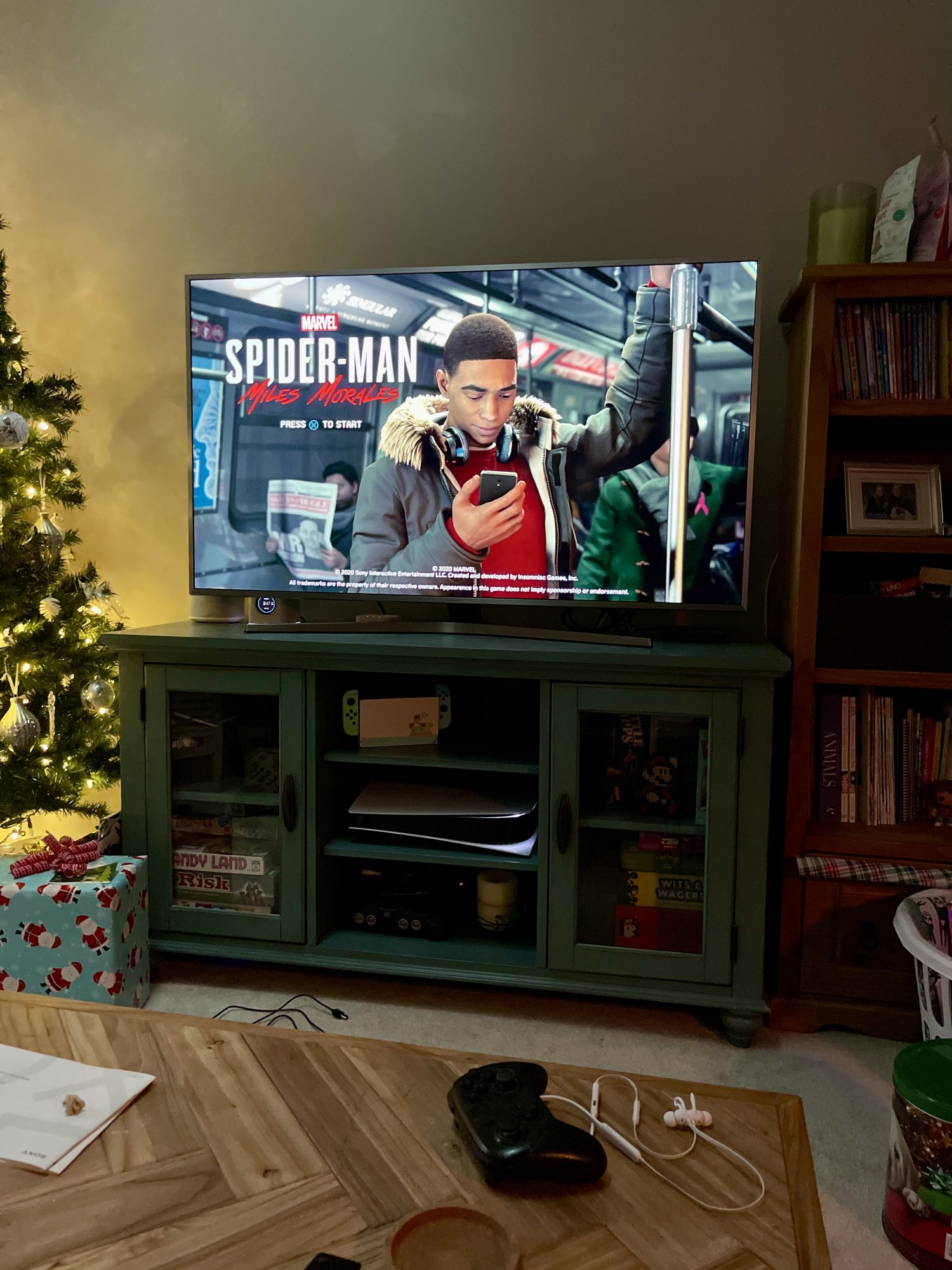 Excuse the Xmas mess - this is our loft setup; not the main tv in the house. I'm also primarily a PC gamer and super proud of my gaming rig but that's in the bedroom. I was lucky enough to score a PS5 at Best Buy before Xmas - its gets a little action but not much; there's not much to play yet.