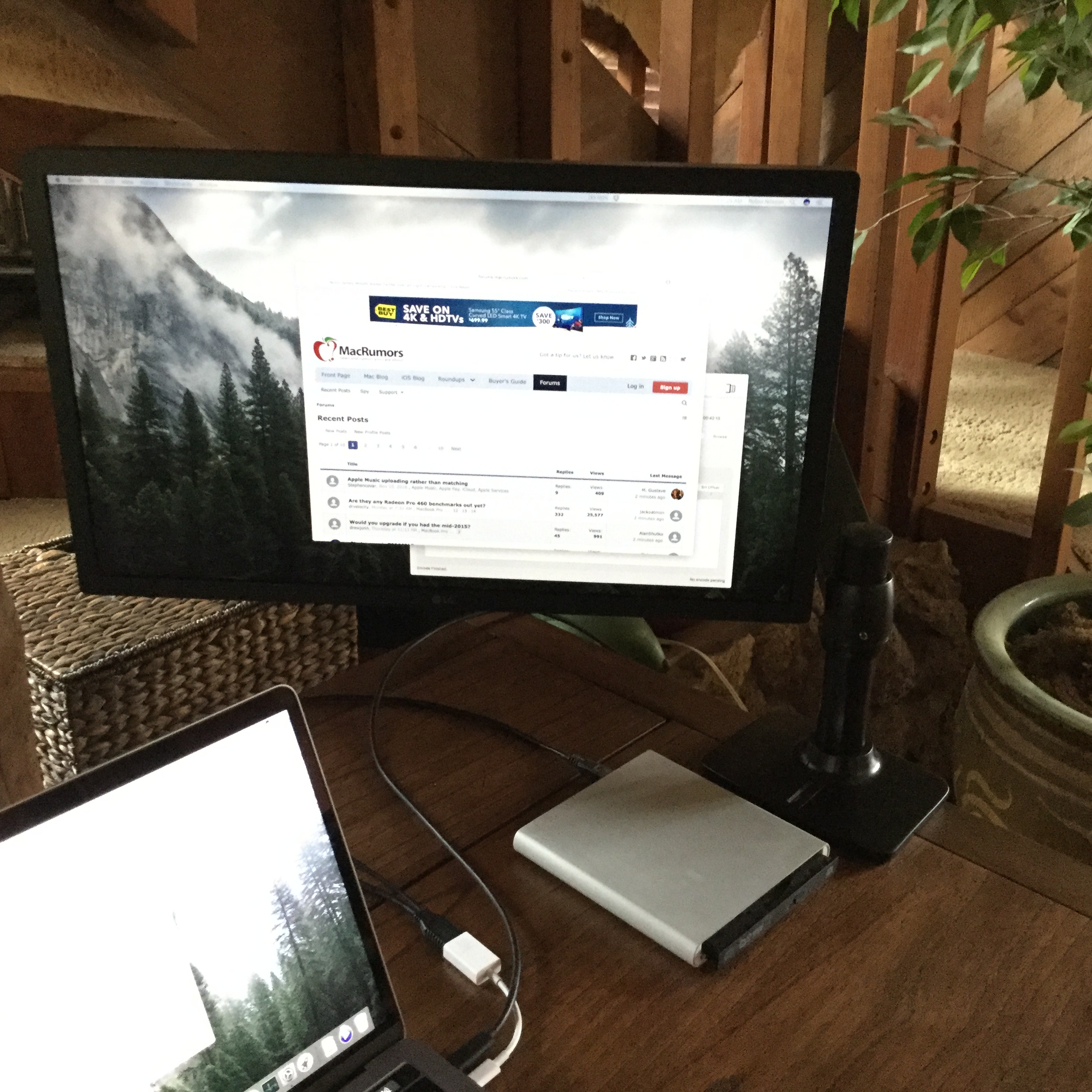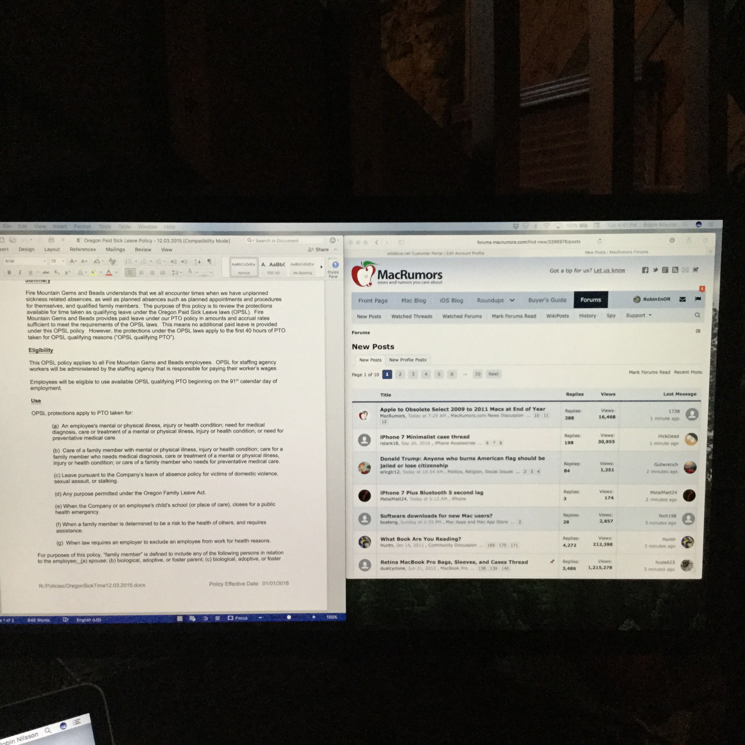 Here's a pic of a Word doc along side Macrumors. Ive left the resolution alone, so the LG is at default 4096x2304. Maybe you can tell actual size by seeing how many words are on each line, each window is over 8" wide. I didn't adjust the color, I'm in a dark room and the brightness is set below 50%. I'd find it very easy to work with two windows side by side. And you've also still got the laptop display unless you're going clamshell.