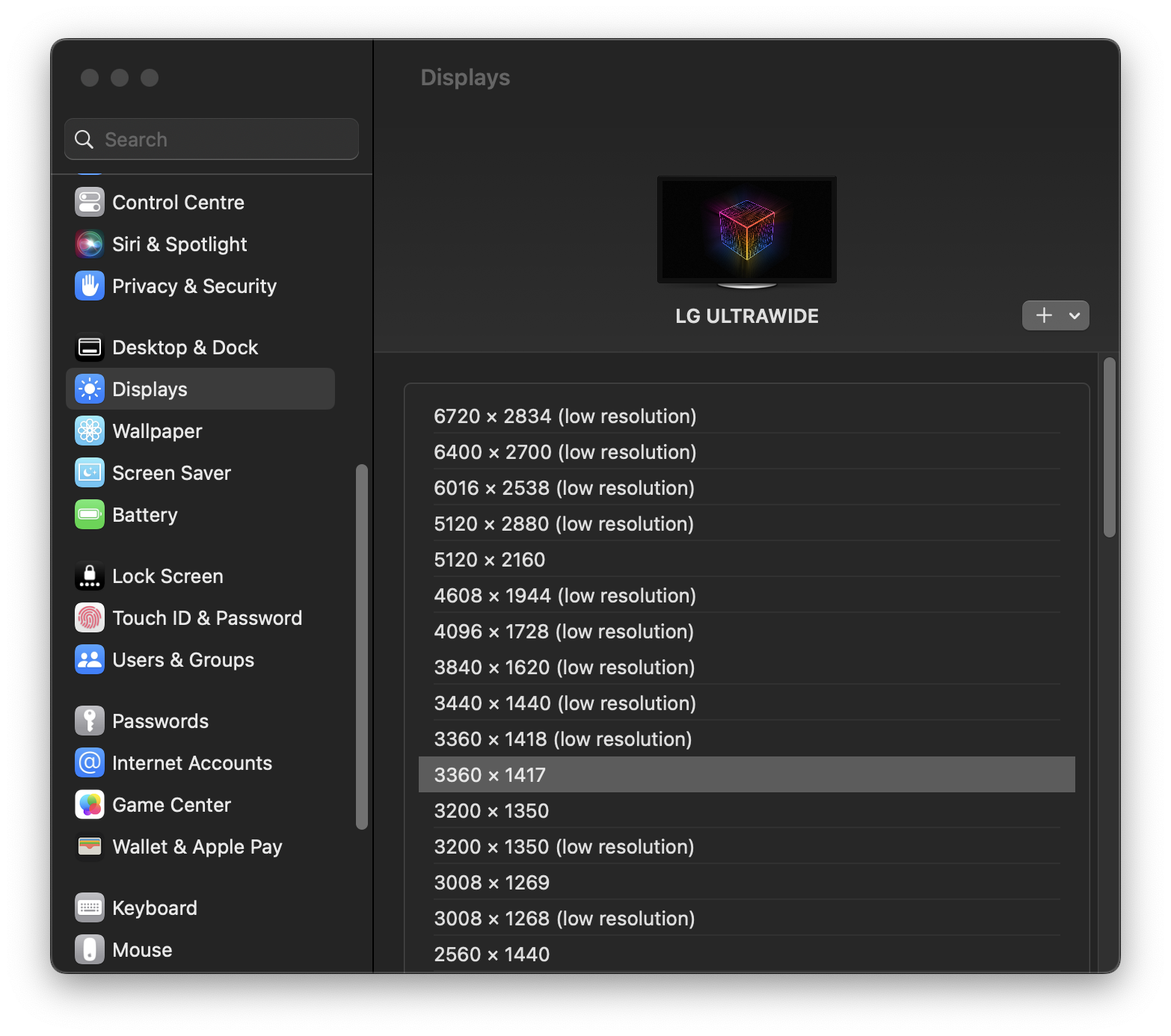 Since updating to macOS 13 I've noticed several resolutions are now only available with the "low resolution" options. 3840x1620 HiDPI does not seem to be available anymore: