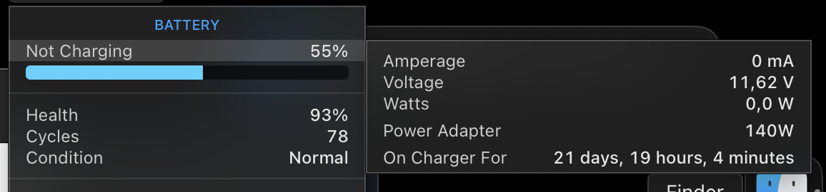 - MBP will use more powerful charger, so if it provides more than 94W, it will be chosen as power source. You can check which power source is used in System Information > Hardware > Power (AC Charger Information) or with iStat Menus:View attachment 2587480