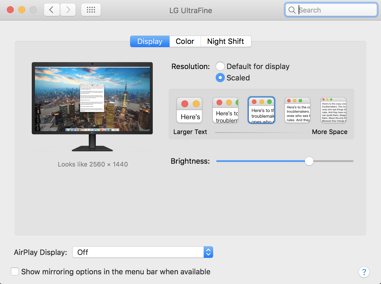 The default resolution on these LG monitors is set to (the equivalent of) 2560 x 1440: