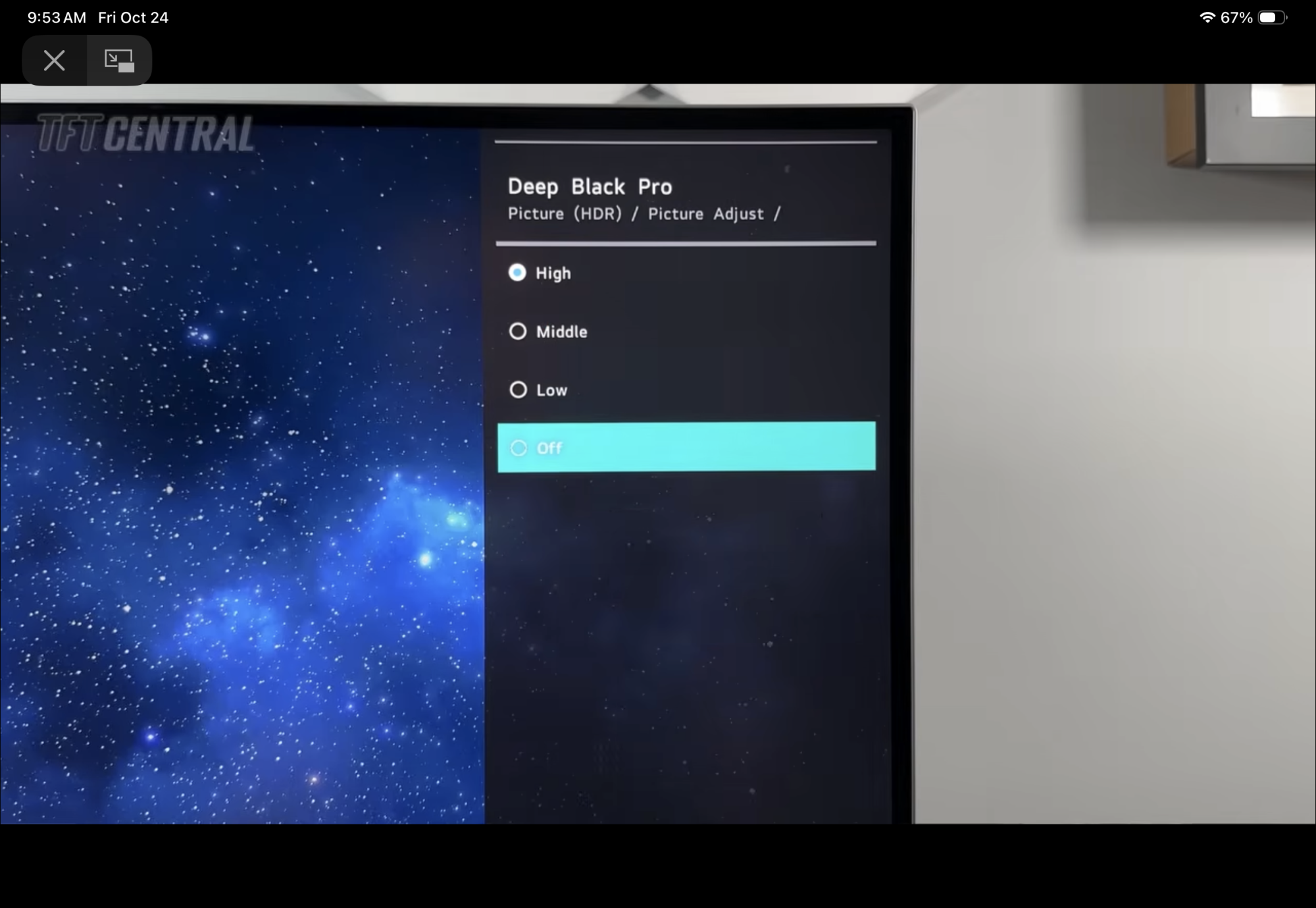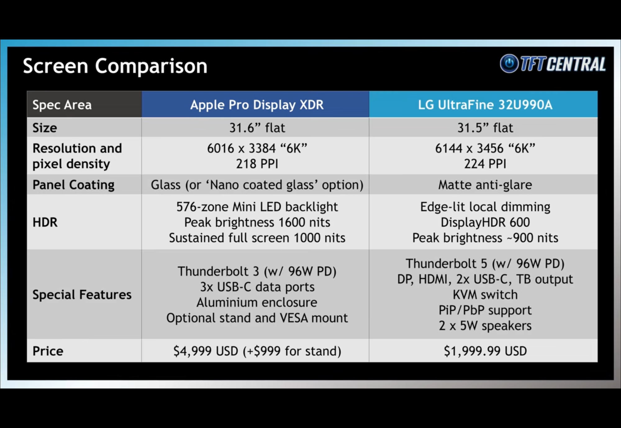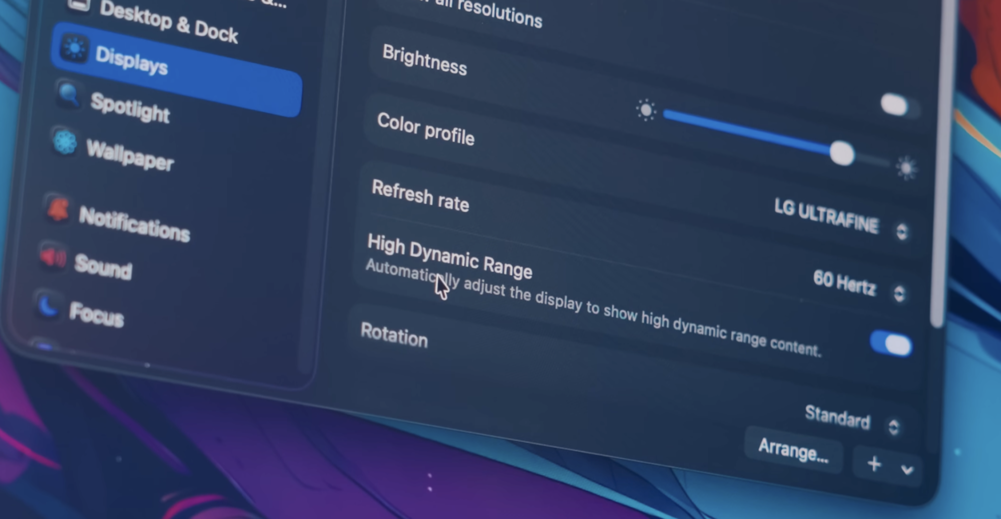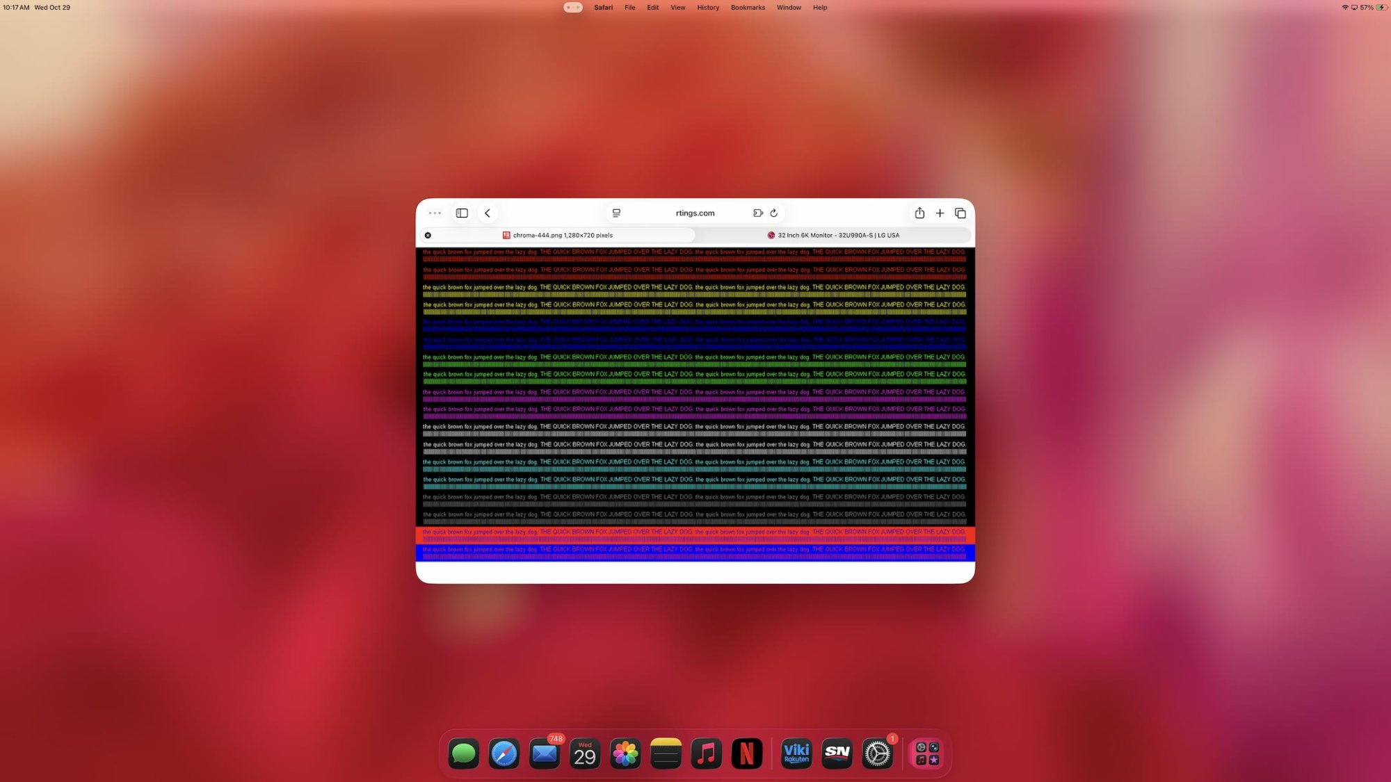 To address this, you can reduce the colour space support down to better match the intended colour spaces. If you use the built-in sRGB emulation mode, the colour accuracy is very good overall, but not excellent in every measurement. If you use the built-in DCI-P3 emulation mode, the same thing is true, with very good colour accuracy overall but not excellent in every measurement. However, the built-in DCI-P3 emulation mode is set at target gamma 2.6 which is inappropriate for most Mac users, since the default on Macs is gamma 2.2. Gamma 2.6 is good for video editors, but it seems strange to me that the LG didn't include an DCI-P3 emulation mode targeting gamma 2.2. I suspect that's what Asus did with their 6K ProArt's Mac-specific setting. So, to get proper Mac appropriate DCI-P3 colour calibration, you'll have to manually calibrate it yourself and not use any of the built-in colour space settings. For me this is not an issue, since I have a
