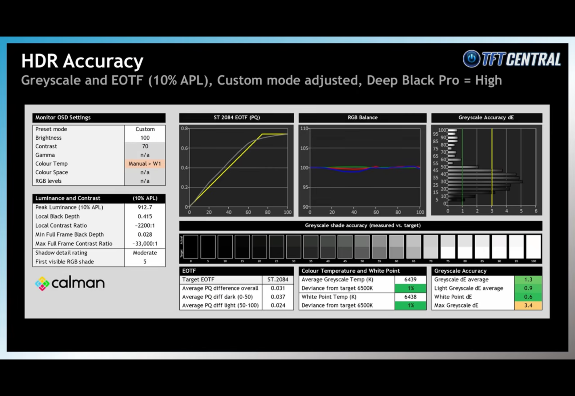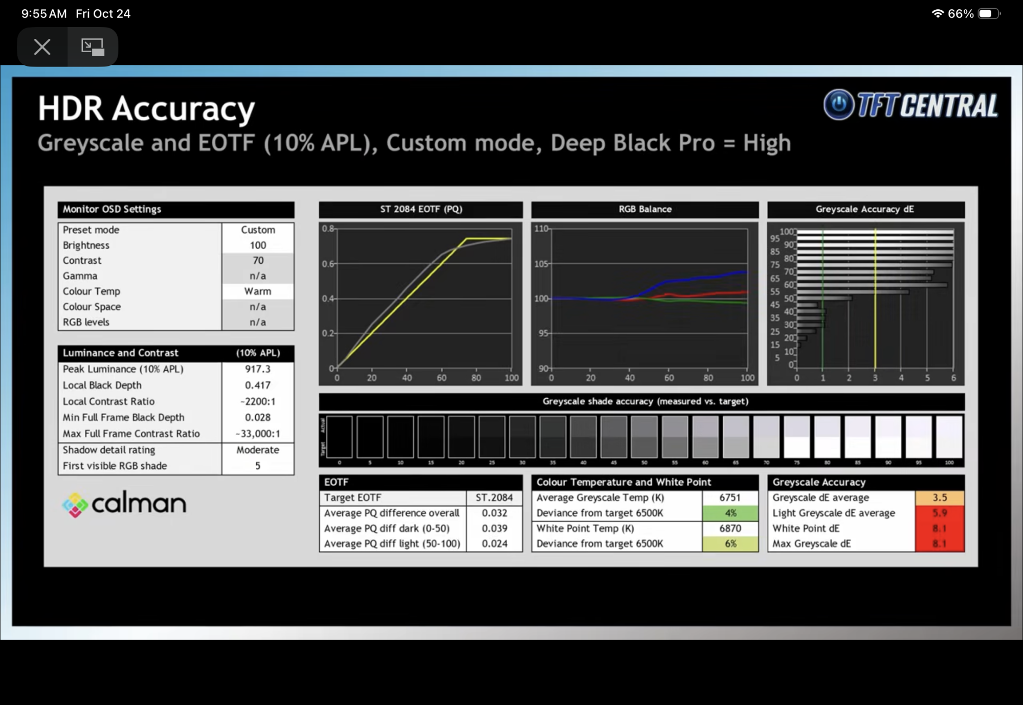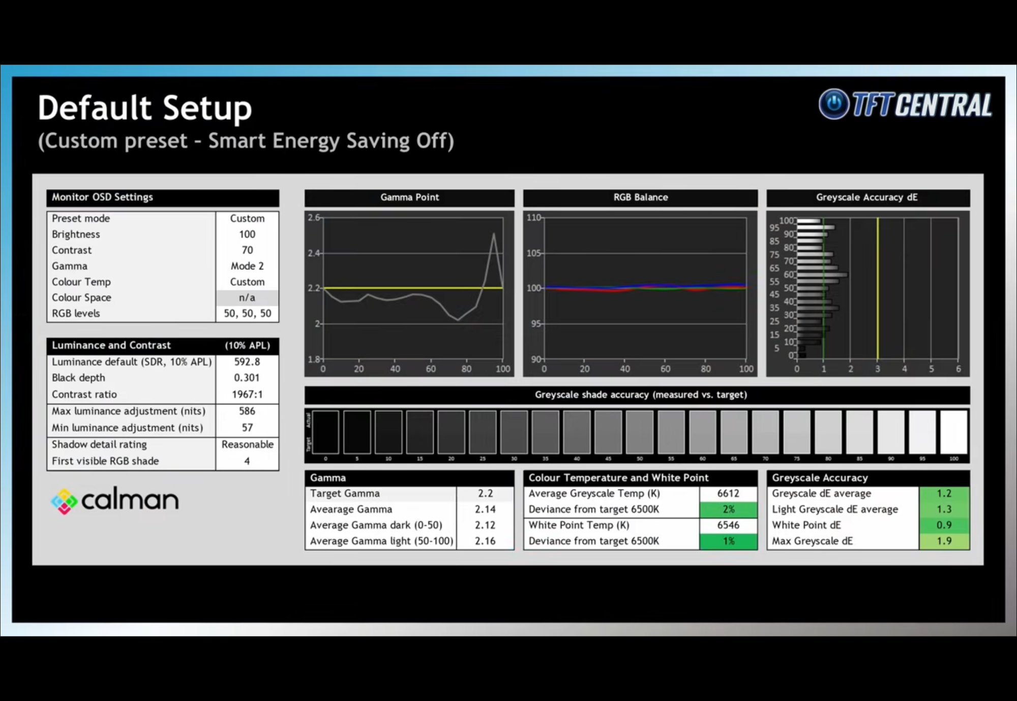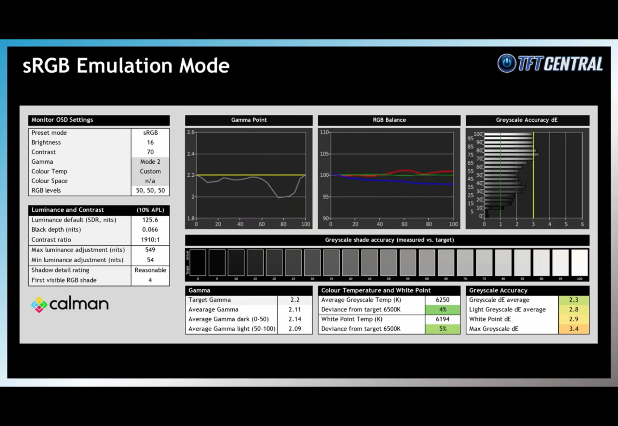 TFT Central did their own manual calibration for sRGB, and then colour accuracy was excellent across the board for all measurements. If you're going to use DCI-P3 which is the default on Macs, then the same would apply there too. They didn't do a DCI-P3 custom calibration in the review, but that's probably because they're on Windows which uses sRGB by default.