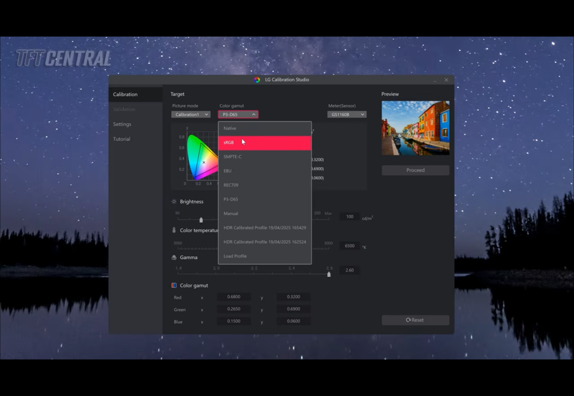 Datacolor SpyderX Pro already. You have the option of using LG's own LG Calibration Studio, or else whatever third party calibration software you have, which in my case would be the software that came with my SpyderX Pro.