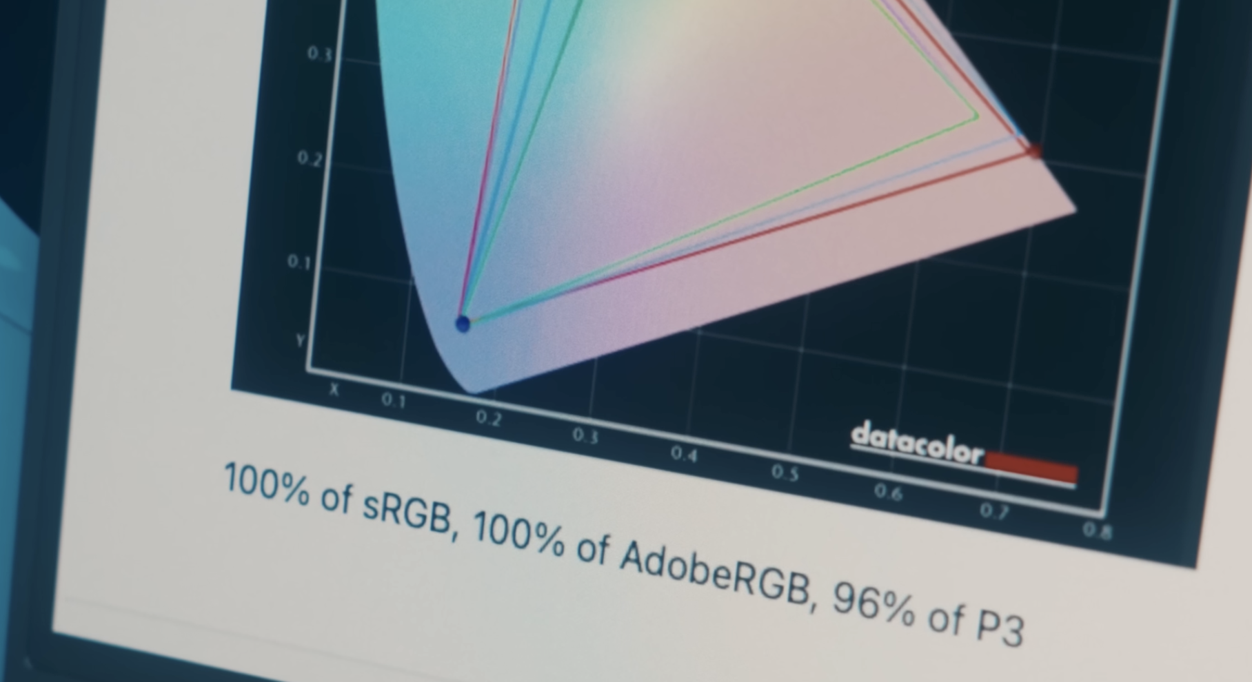 According to the TFT Central review, the full native colour space of the panel is way, way larger than sRGB, and larger than DCI-P3 and even AdobeRGB too. I'm not sure what colour space you are using, but I assume it's not AdobeRGB.
