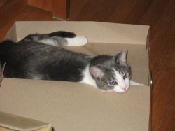 paleck said:My family has cats (up to three of them (and a bird) at one time). A few years ago I moved back into my mom's house for a few months and discovered what the youngest cat does. When I had lived in the house before I was upstairs, but this time I was in the basement. At approx 4:45 to 5:00am Prince would start running laps around the main floor of our house. Image the pitter, patter, pitter, patter, silence (as he jumps up on couches, sofas, tables and chairs in his way), landing, pitter, patter. He keeps this up until someone comes out of their room or until 6:30am. If someone does come out of their room he makes sure to lie down directly in front of your path so that you will trip over him on your way to the bathroom. This ensures that he gets a full stomach rub first thing in the morning before he goes off to do other catly things.
