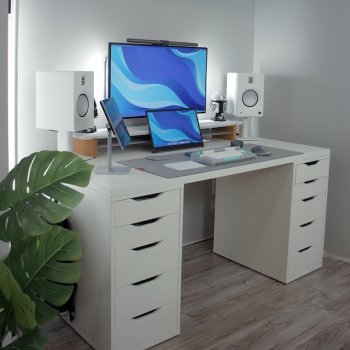 What it can help to reduce glare if the desk in front of the screen covered with a non-reflective desk mat.