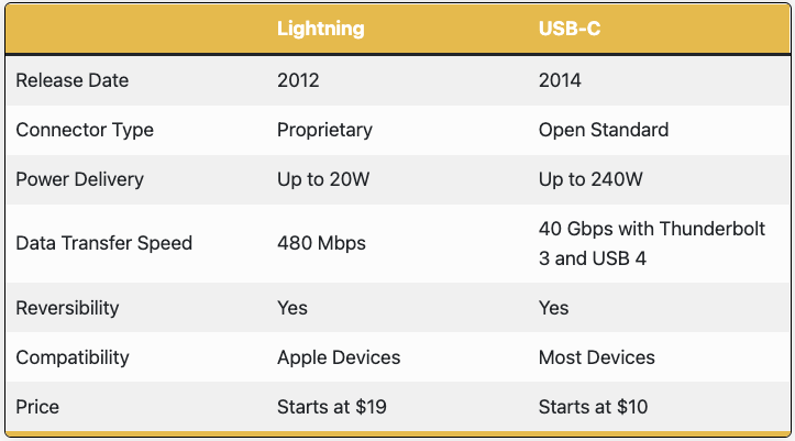 Lightning has not been updated in years, whereas USB-C technology keeps improving.