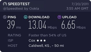 Not all of us. Here is Aussieland I'm getting 15Mbps/0.9Mbps.FCK youse!! haha, here in australia we might have iPhones on like 5 carriers and a better dollar than the US. BUT my internet connection is 512kbps down 128 up...... We here in aussieland have slow internet.