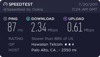 Are you really in Hawaii? Your speed may be slow, but who cares in a place like that?!I'm a bit late, but do I get the achievement of worst download speed?