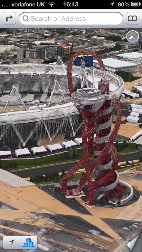 On a separate note, how does one do the flyover where it actually flies around like in the keynote demo? I tried to show this to a friend and I had to manually rotate it with my fingers which is not as cool as automatically flying over. I tried to pick to places on the map to get directions to/from, but it insisted on using the current location as one of them which is a problem since the current location doesn't have 3D.