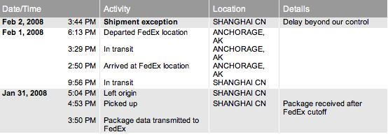 seriously, i'm surprised you don't have a "departed fedex location" already.