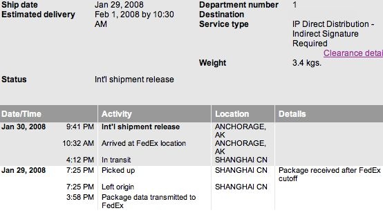 But we've already passed 1PM PST and it doesn't show it's arrived in AK. It'd better go to Indy...since that's closest
