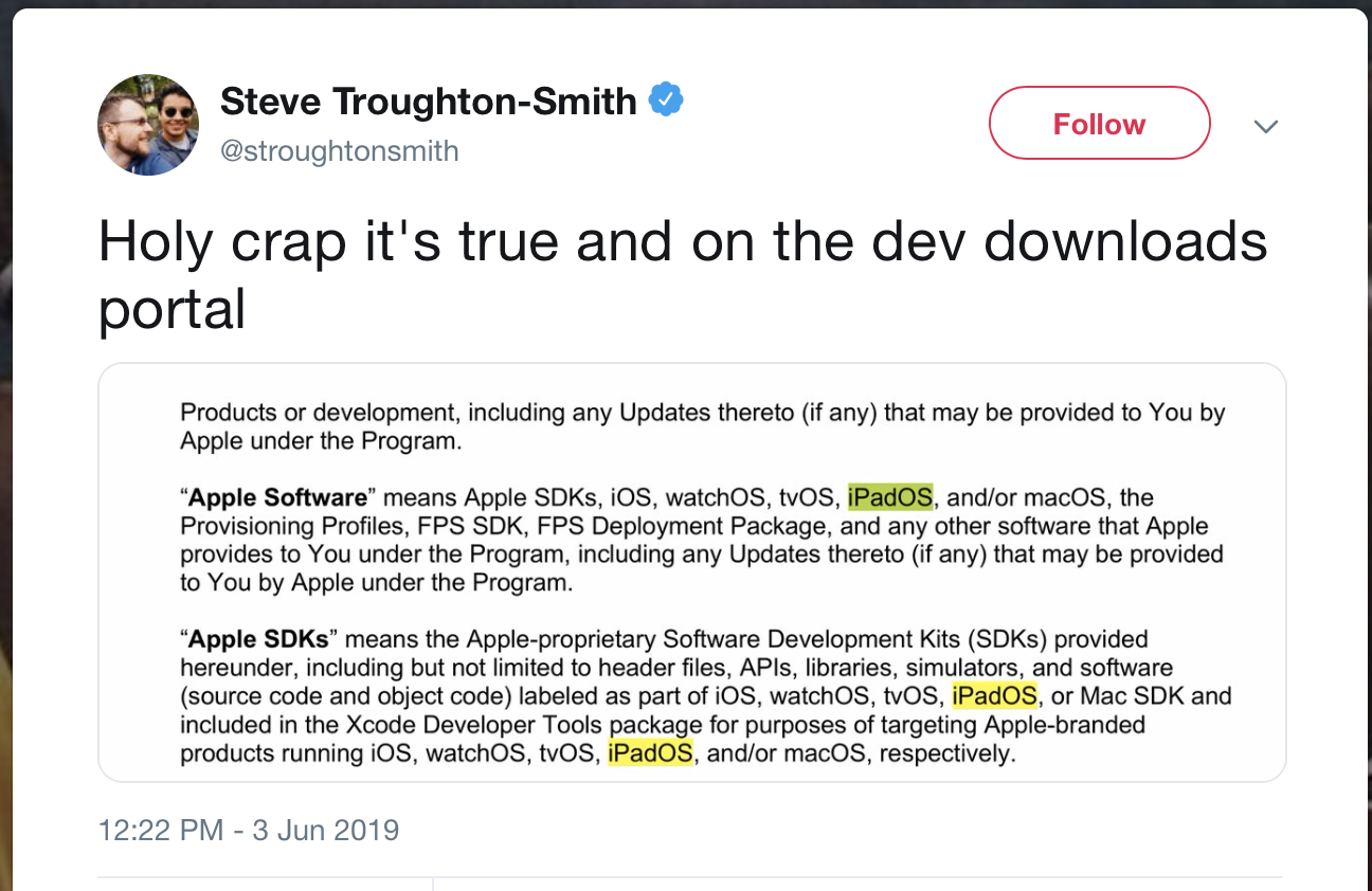 I'd be happy if we got some good usability/multitasking improvements for the iPad and a dark mode. I'd be over the moon if they updated the Mail app with category sorting, snooze, reminders, and send later.