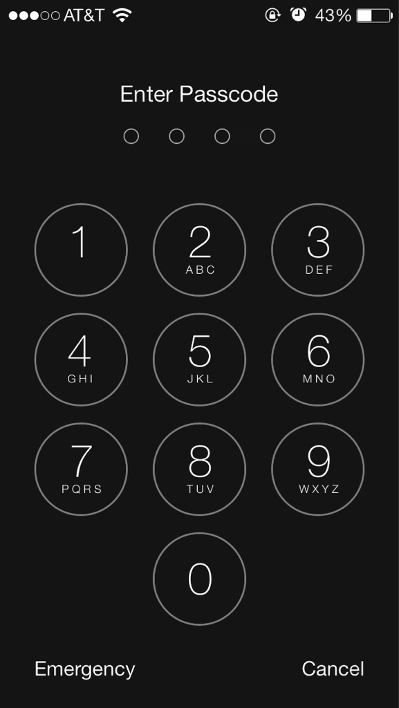 Normally when I would unlock my phone I'd get a keypad with the numbers circled and dots at the top showing I typed in each digit like this.