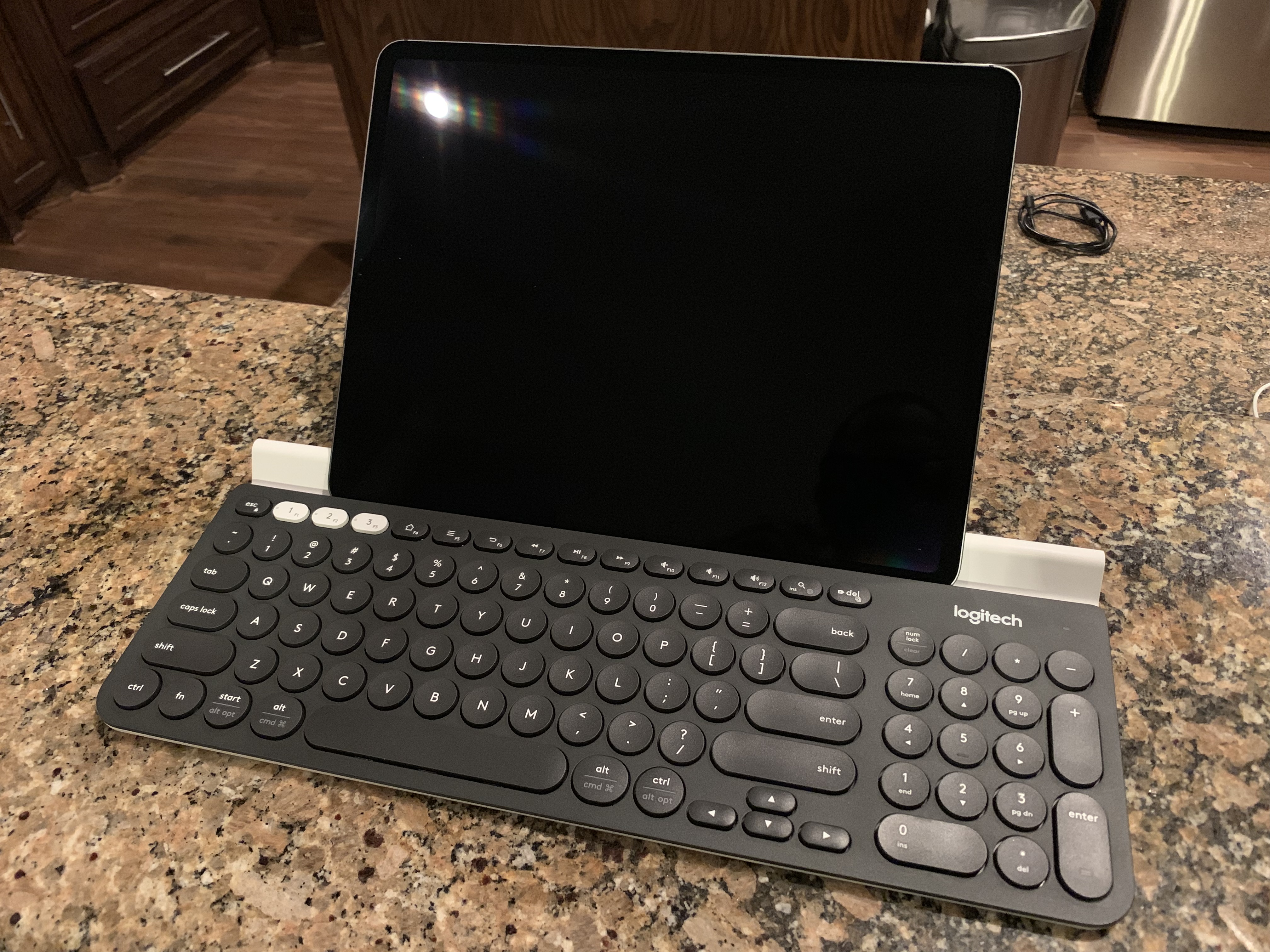 That's a great price for that keyboard! We've got one for my wife's desk (I use it with my iPad sometimes) and it has held up very well. It doesn't have the travel/feel of my Apple bluetooth keyboard but I really like it and the fast switching is great if you've got a couple devices (computer, iPad, Apple TV, etc.)This isn’t a case but I picked up the Logitech K780 Bluetooth Keyboard over the weekend for $40. It was on sale at Best Buy. Was looking for a dedicated desktop keyboard while at home for the new 12.9”. So far its been pretty nice. Hopefully it holds up over time. I may go back and purchase the extended warranty. It’s main use will be at the kitchen table or on my lap desk in bed. It’s multi device so that is huge plus for the household.