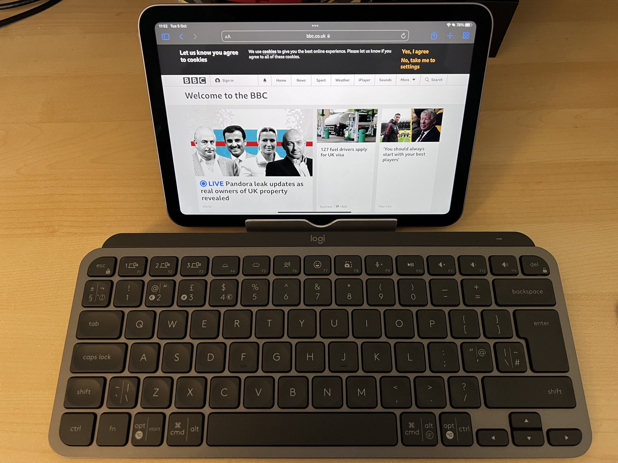 Arrived today, ipad mini 6 to give an idea on size. i can‘t type well on smaller keyboards so having something with the full size experience but effectively knocking off the keypad works for me.