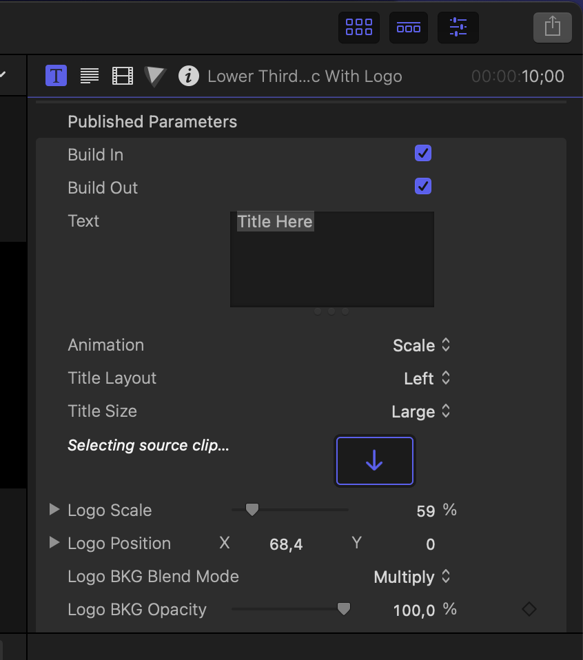 I'm kind of new to Final Cut Pro X. I'm working on a project and am trying out the "lower third basic with logo" title. It adds the title and you're able to enter the text. There is a circle that shows "logo here". How exactly are you supposed to get a logo into there? I don't see anything in the inspector that lets you import a graphic to go in that space. I've googled how to do it and all the results are merely just adding titles.