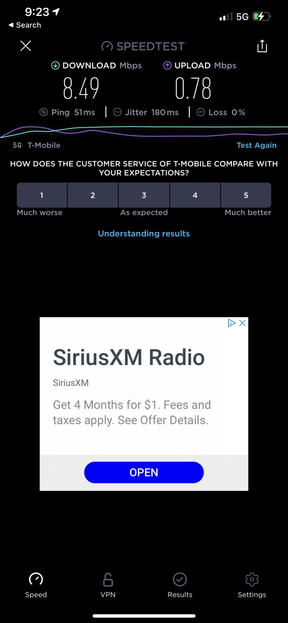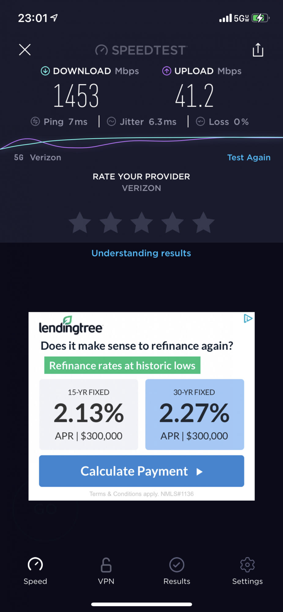 That is excellent speed. Pay the $1 to get rid of the ads on Speedtest.This is at the Atlanta Airport. WOW!!!