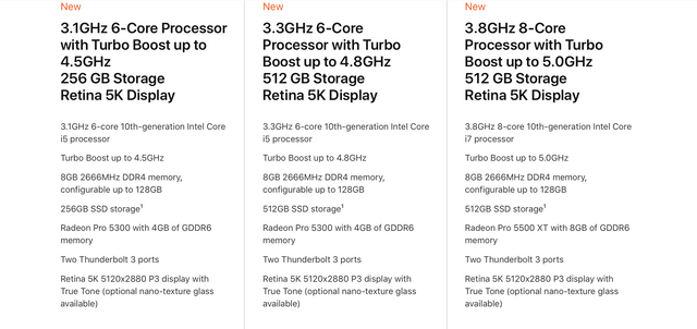 - 3.8GHz 8-core 10th-generation Intel Core i7 Processor, Turbo Boost up to 5.0GHz