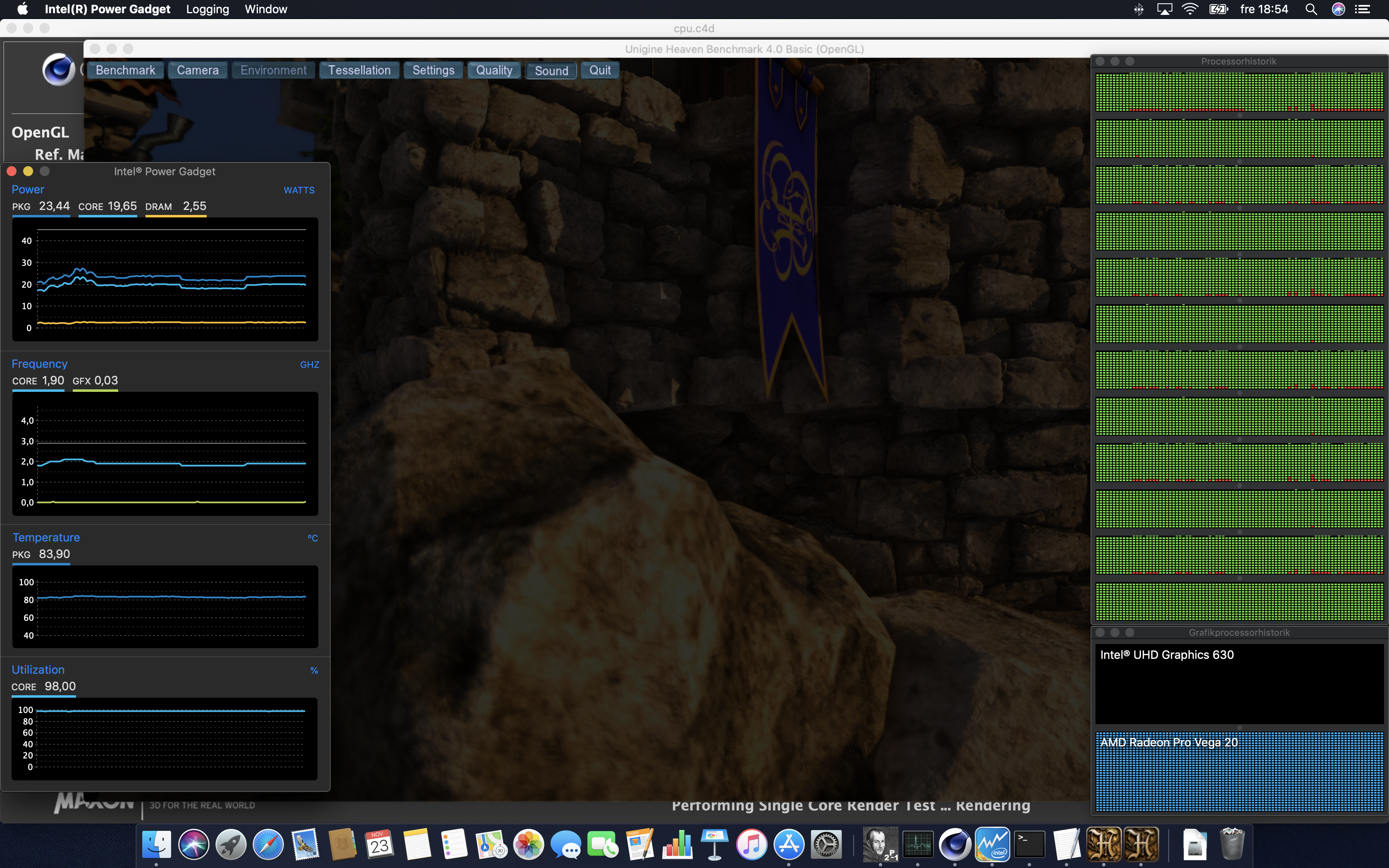 After you are done with the test, you'll need to use activity monitor to terminate each null command. This will not damage your MacBook as it will throttle like every other laptop. Also, you only need to run it until the CPU throttle stabilizes The result should look like this: