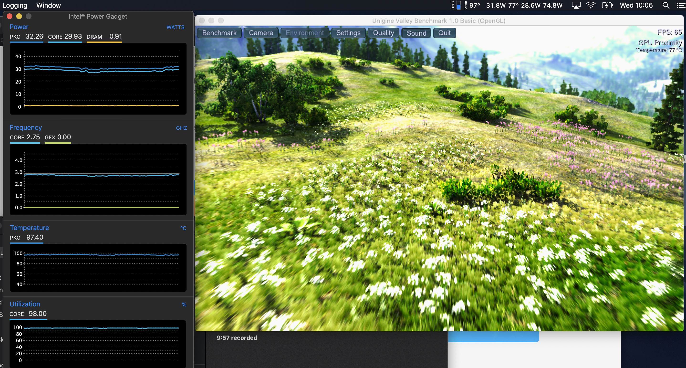 - The throttling is very minimal, the CPU — even with GPU drawing 30Watts — stably operates at frequency just 5% below nominal. This is a stark contrast to my previous i9 MBP which would clock down below 2Ghz in such scenario.