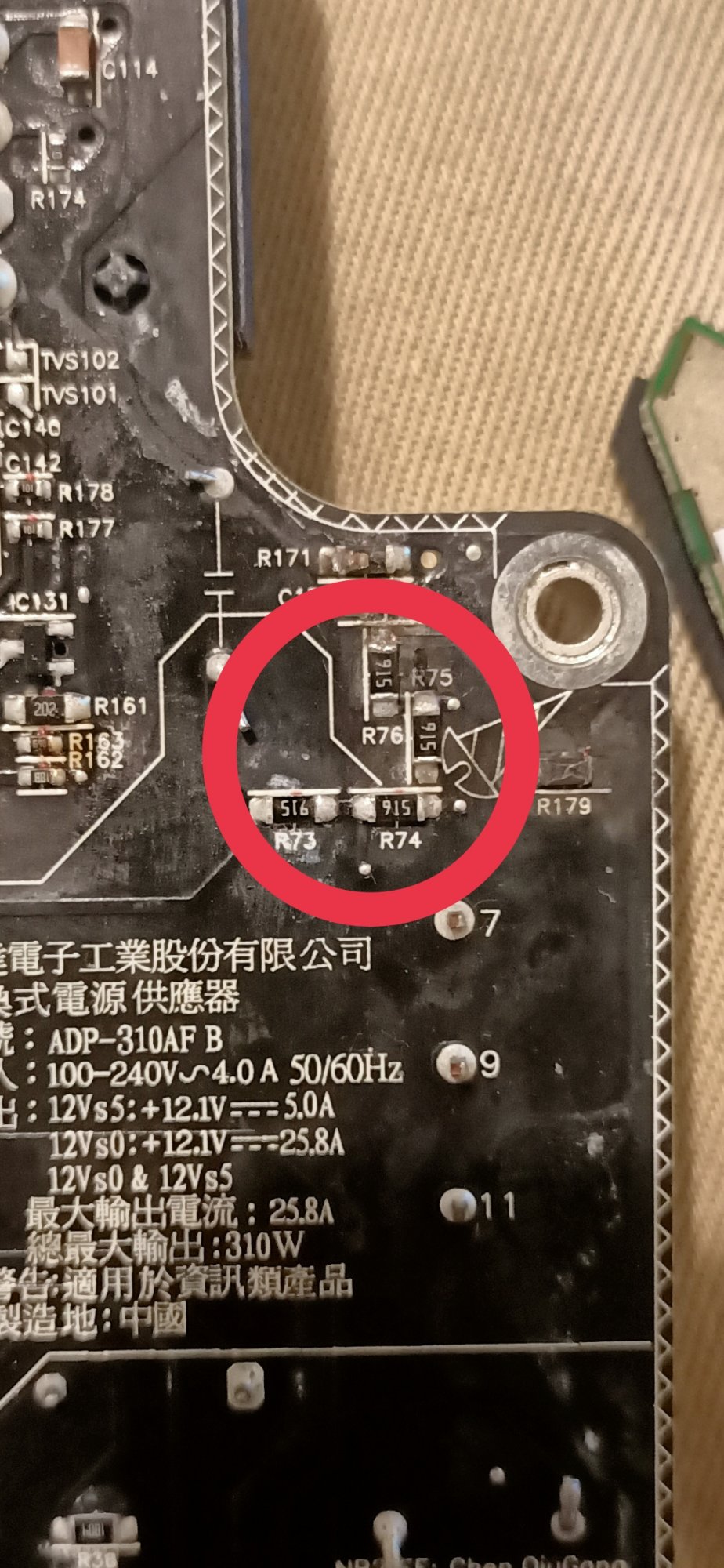 If you happen to have the one of model ADP-310AF, I appreciate this, too. I have repaired several standard switch mode supplies, but Apples is more complex, with PFC and resonant mode controller. It is the latter (NCP1396A) which does not get correct supply voltage on the primary side. It is hovering around 10V only, but since the supply is using the 1396A version, it should probably be more. As such, the control is not working correctly. My output is only 8V on the secondary.