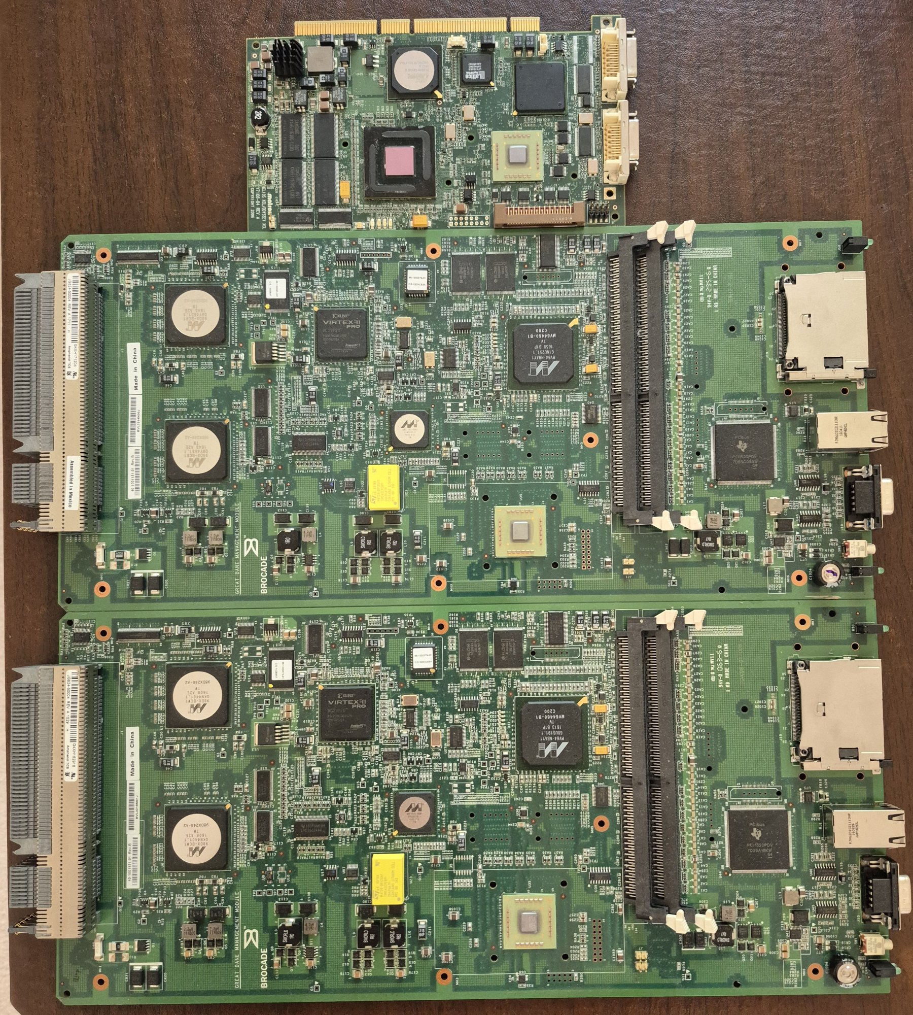 I've been decluttering like crazy as of late and going scorched earth on a lot of old hardware I hoarded because it reminds me of the delusional pipe dreams I once had. Now that I'm a college graduate I have no time for retro tech and must commit myself to my career so I gotta downsize. So I'm looking to sell these boards with MC7448 CPUs on them. Two are Brocade server boards and one is a Matrox video card of some kind. Each I'm asking about $50 before shipping.