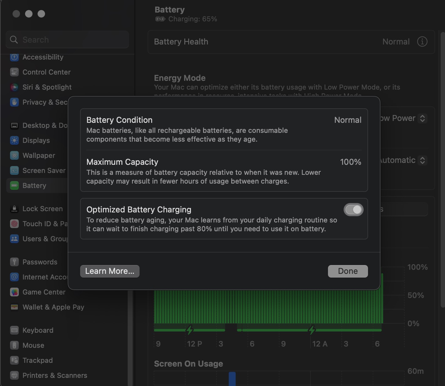 Is it just me or does anyone else notice their 16" MBP stay fully charged without learning charging habits in Ventura? I have my laptop plugged in all the time with the occasional battery usage and it used to default back to optimized charging to 80%, but it has stayed 100% since I upgraded to Ventura.
