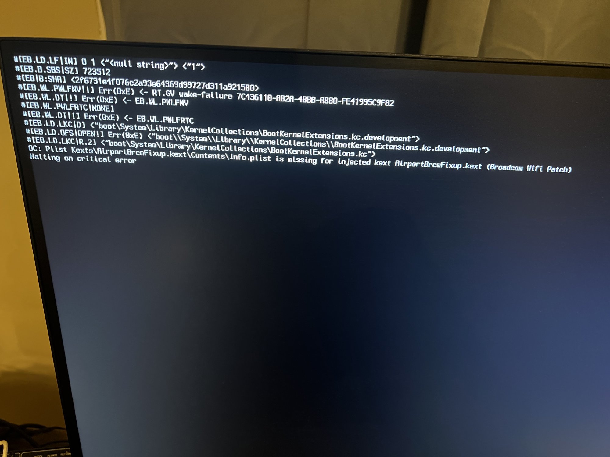 The past week, I've been attempting to get OS Monterey 12.7.3 on my Mac Pro 5, 1. It has been nothing short of a headache and it's at a point where I don't know what to do. The initial update worked fine enough, however it rendered my bluetooth and wifi card useless. Upon buying a new one card, I installed it and went through the process of replacing kext files using OpenCore Generator.