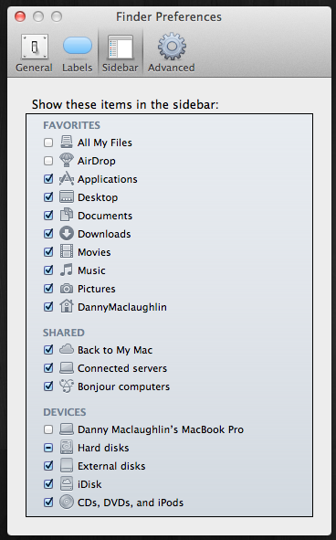 Lion must have changed the finder > preferences thing cause this is what it looks like now: View attachment 293047