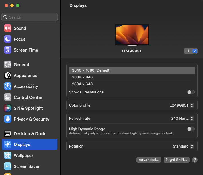 Last night I upgraded to Ventura, waiting for the final release 🥳. But something happened to the supported resolutions with one of my monitors.