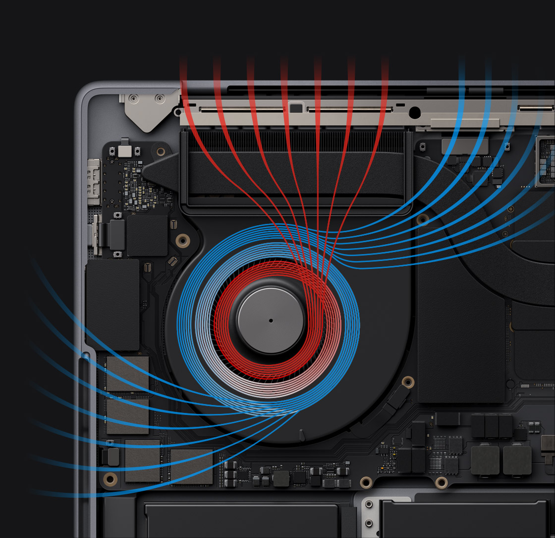 That’s in contrast to the MacBook Pro approach of putting the NAND chips on a cool area of the board and right where the cool air gets drawn in by the fans: